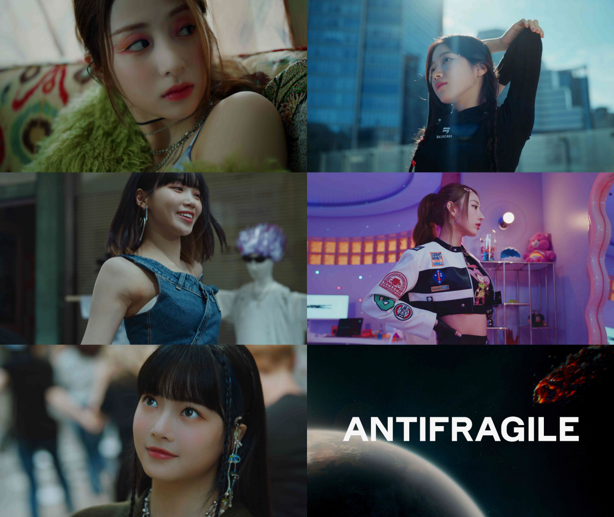 이어 기타를 연주하는 허윤진, 토슈즈를 벗고 요가를 즐기는 카즈하, 혼란스러운 인파 속에서 당당하게 자신의 길을 가는 김채원, 라이딩을 준비하는 듯한 사쿠라, 떨어지는 운석을 바라보며 미소 짓는 홍은채가 등장한다. 반복적으로 들려오는 "I am antifragile"이라는 말은 영상의 집중도를 수직 상승시킨다. 또한, 티저 말미에 삽입된 "더 부어 gasoline on fire / 불길 속에 다시 날아 rising"이라는 가사에서는 시련에 굴하지 않는 강인함이 느껴진다.