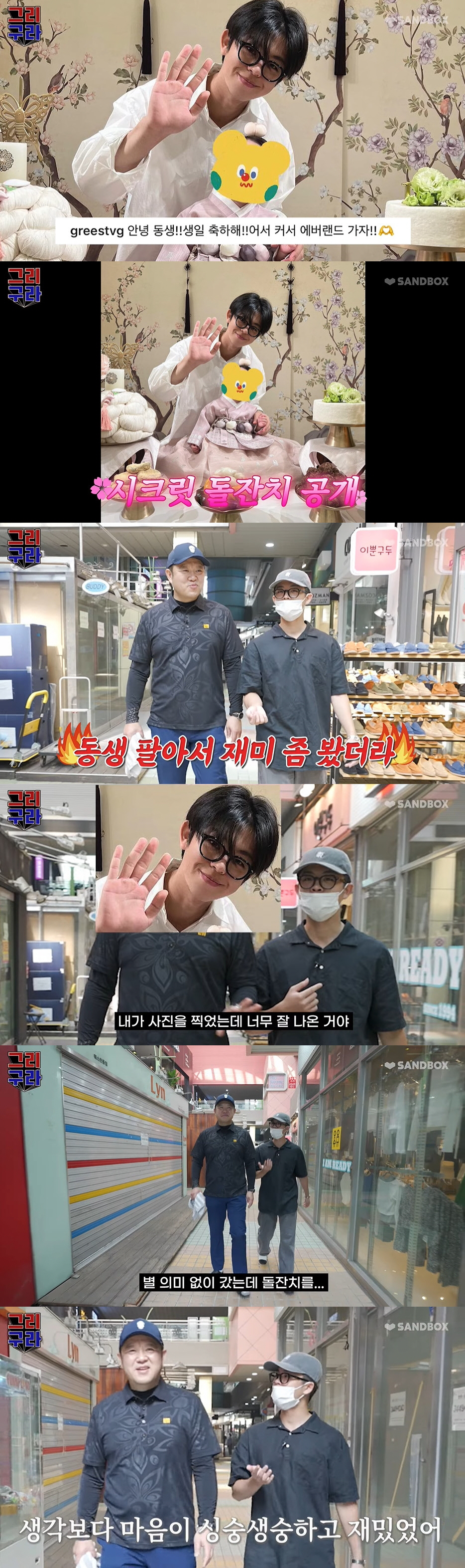 이날 김구라는 그리와 함께 홍서범의 딸이 운영 중인 가게로 향하던 중 "우리가 서로 가족 이야기 안 하기로 했는데 돌잔치 사진 올렸더라"면서 "동생 팔아서 재미 좀 봤더라"며 돌직구를 날렸다. 최근 그리는 자신의 SNS에 "안녕 동생! 생일 축하해! 어서 커서 에버랜드 가자"라면서 23살 차이 여동생의 돌잔치에서 찍은 사진을 공개해 화제가 된 바 있다.