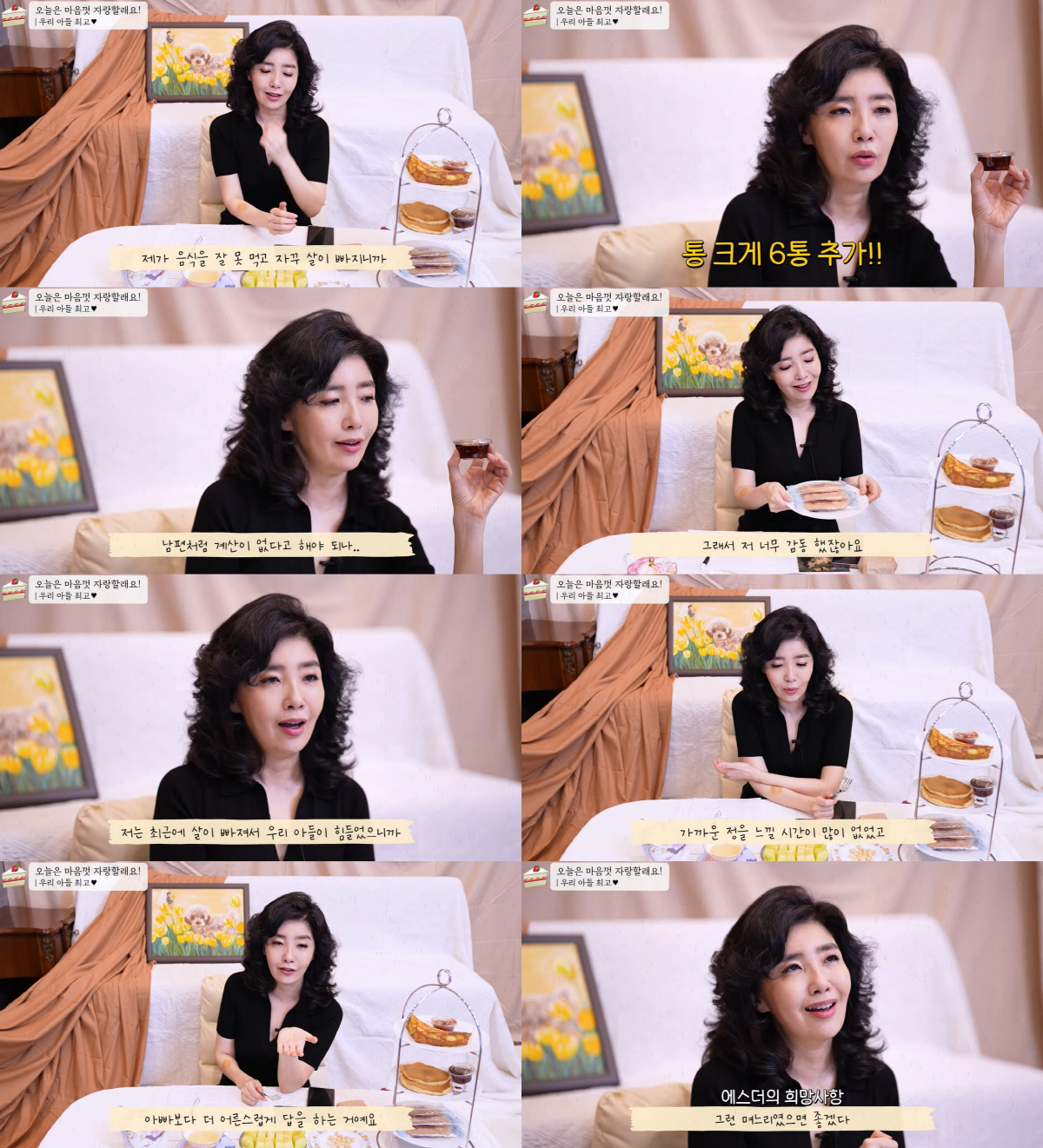 여에스더는 아들이 자신을 위해 팬케이크와 프렌치 토스트를 준비했다고 자랑하며 "메이플 시럽 좋아한다고 했더니 6통을 추가했다. 통이 크다고 해야 하나, 남편처럼 계산이 없다고 해야 하나. 어쨌든 아들 고마워"라며 미소 지었다. 또한 아들이 자신이 좋아하는 과자를 사기 위해 택시를 타고 다녀온 사실도 밝히며 "너무 감동했다"고 전했다.