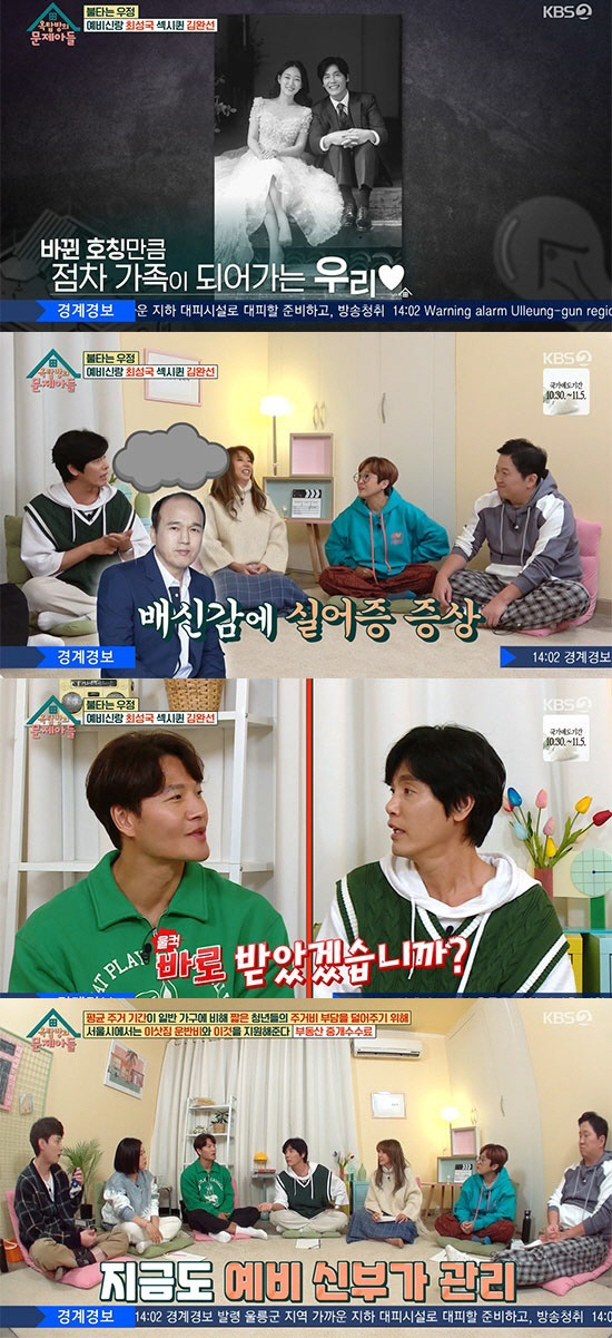 최성국은 '찐친' 김광규가 자신의 결혼 소식에 충격을 받아 '실어증'처럼 열흘간 말을 못 하기도 했다는 반응도 전했다. 그는 "내 결혼 소식을 듣고 아침 드라마 한 장면처럼 광규 형이 우리 집 소파에 쓰러져 있었다"라고 말해 웃음을 안겼다.