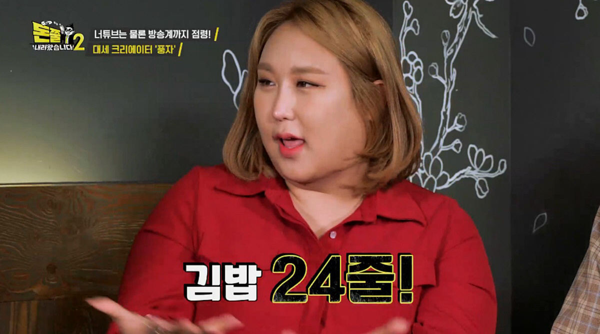 곧이어 스페셜 먹요원으로 크리에이터 풍자가 등장, "한창때 김밥 24줄을 먹었다"라고 말해 모두를 놀라게 만든다. '먹보스' 이영자가 보증하는 먹요원들조차 "24줄은 무리다"라며 혀를 내두르기 때문.