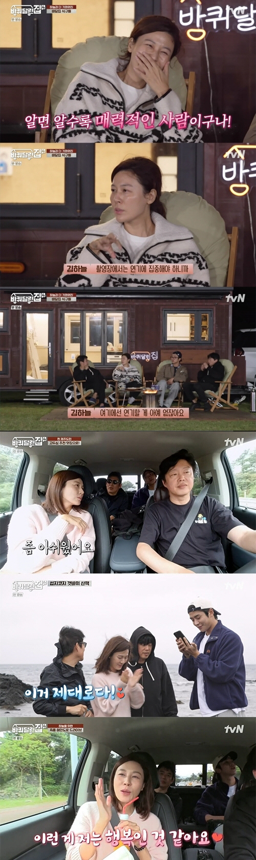 이에 김하늘은 김하늘은 "사실 촬영장에서는 사람들이 편하게 느끼지 않는 것 같다. 내가 부족하다고 생각하기 때문에 집중을 하는 편이다. 근데 여기서는 그렇게 집중할 필요가 없다"며 고백했다.