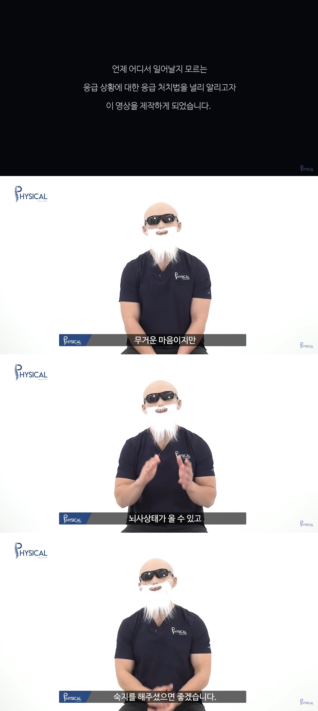 하임리히법에 대해서는 "음식물이나 이물질이 기도에 막혔을 때의 응급처치"라고 설명하며 "얼마 전 감자탕 집에서 어떤 손님이 음식을 드시다가 기도가 막혀 큰일 날뻔했다. 근데 주변에서 하임리히법으로 구조를 해주셨다. 숨을 제대로 못쉬거나 얼굴이 파랗게 질린 채 말을 못 하는 상태인 사람에게만 해야 한다. 기침을 하거나 말을 할 수 있다면 부분적인 기도 폐쇄이기에 자발적인 기침을 유도해야한다"고 이야기했다.