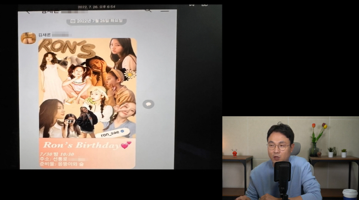 이진호는 "김새론의 생일은 7월 31일, 사고를 낸 건 5월이었다. 김새론은 본인의 생일을 맞아 직접 초대장을 만들어 지인들에게 보냈다. 김새론이 보낸 초대장을 보면 주소는 술집이다. 준비물은 몸뚱이와 술이었다. 이곳에서 지인들과 생일파티를 했다"라고 말해 충격을 안겼다.