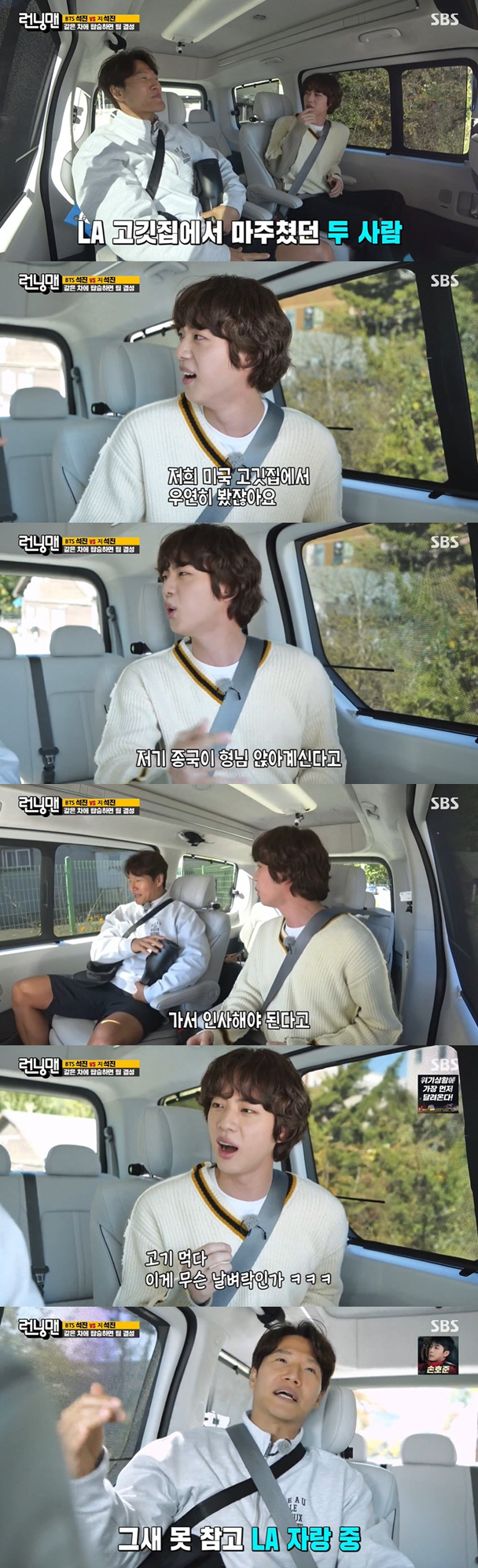 [스포츠조선닷컴 정유나 기자] '런닝맨' 방탄소년단 진이 김종국과 LA에서 만난 일화를 공개했다.