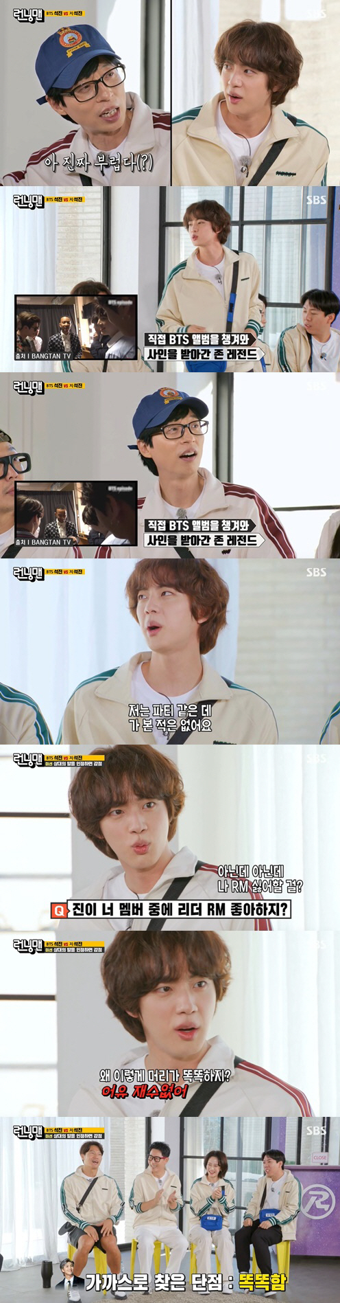 [스포츠조선닷컴 정유나 기자] '런닝맨' 방탄소년단 진이 예능감을 발산했다.