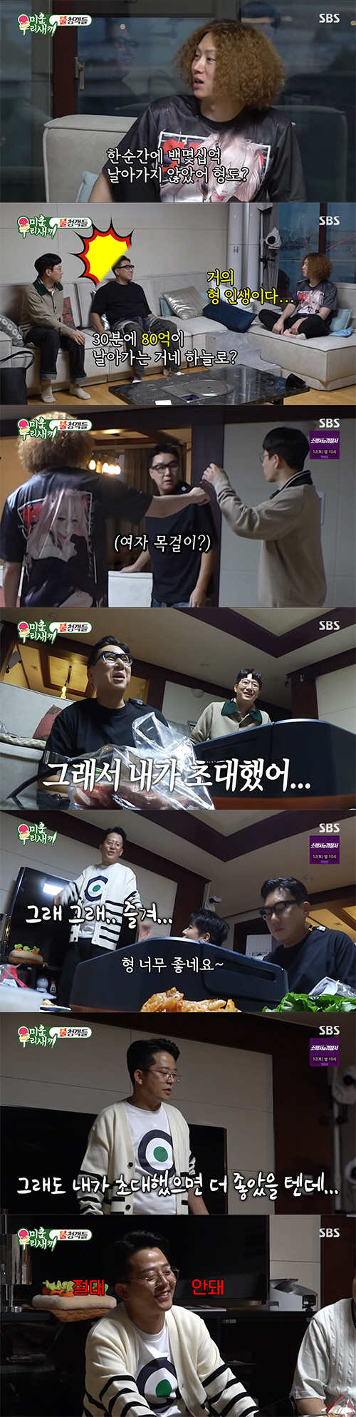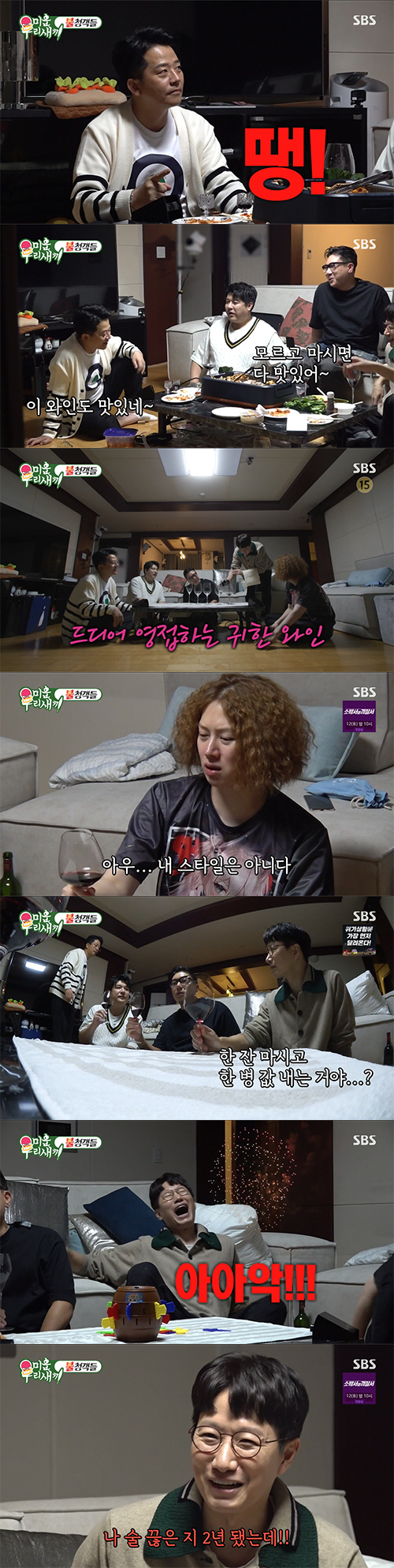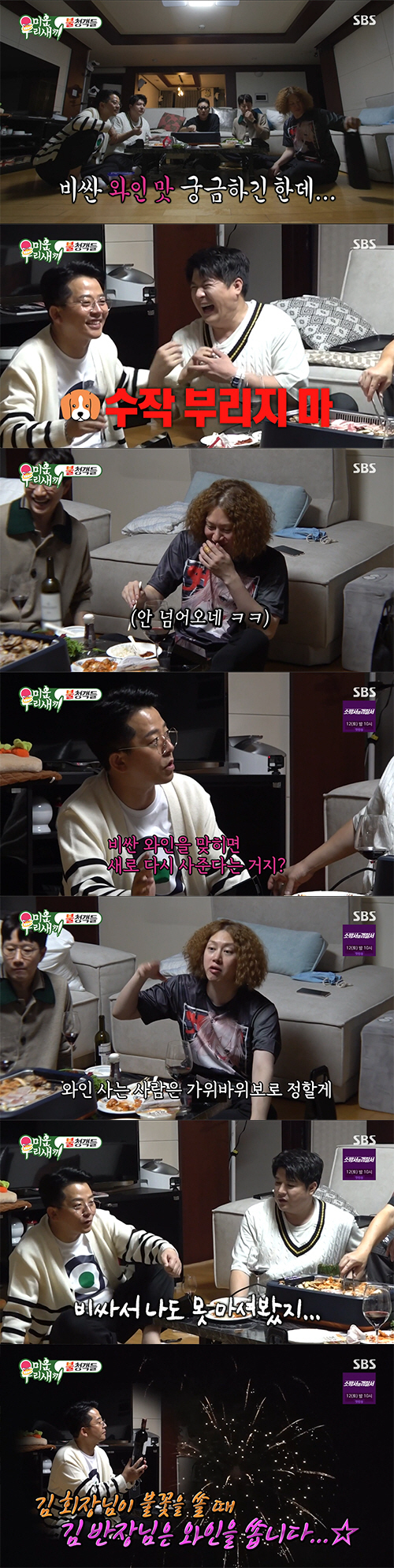 결국 와인을 불청객들에게 구경 시켰고, 김준호는 "이건 프러포즈 할 때 마실 거다"라고 했다. 김희철은 "그럼 이거 오늘 마시고 해라"라고 말해 김희철은 당황케 했다.
