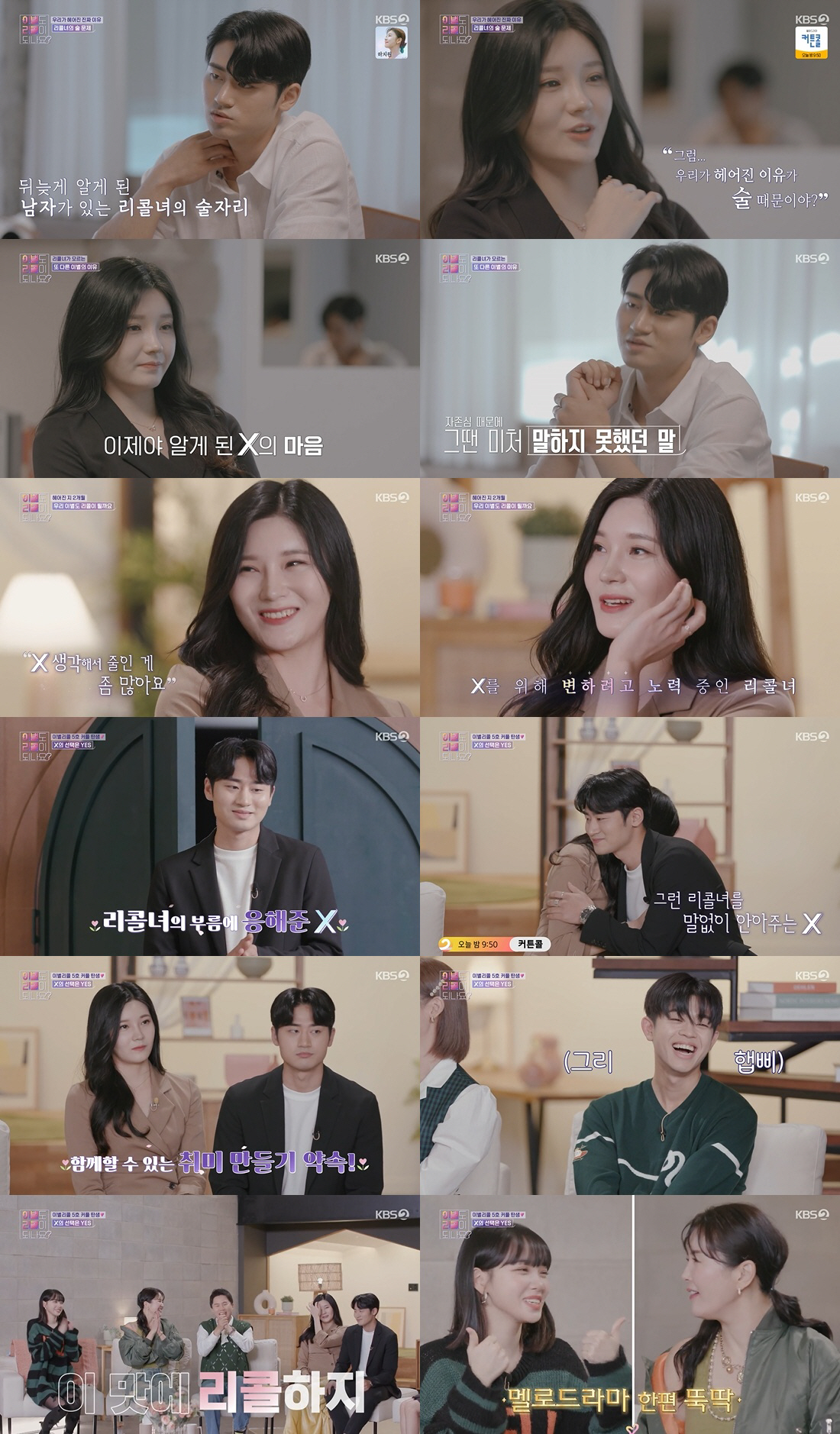 진솔하고 절실한 리콜남과 리콜녀의 지극히 현실적인 사랑, 이별, 재회를 보여주는 러브 리얼리티 KBS 2TV '이별도 리콜이 되나요?'는 매주 월요일 오후 8시 30분 방송된다.
