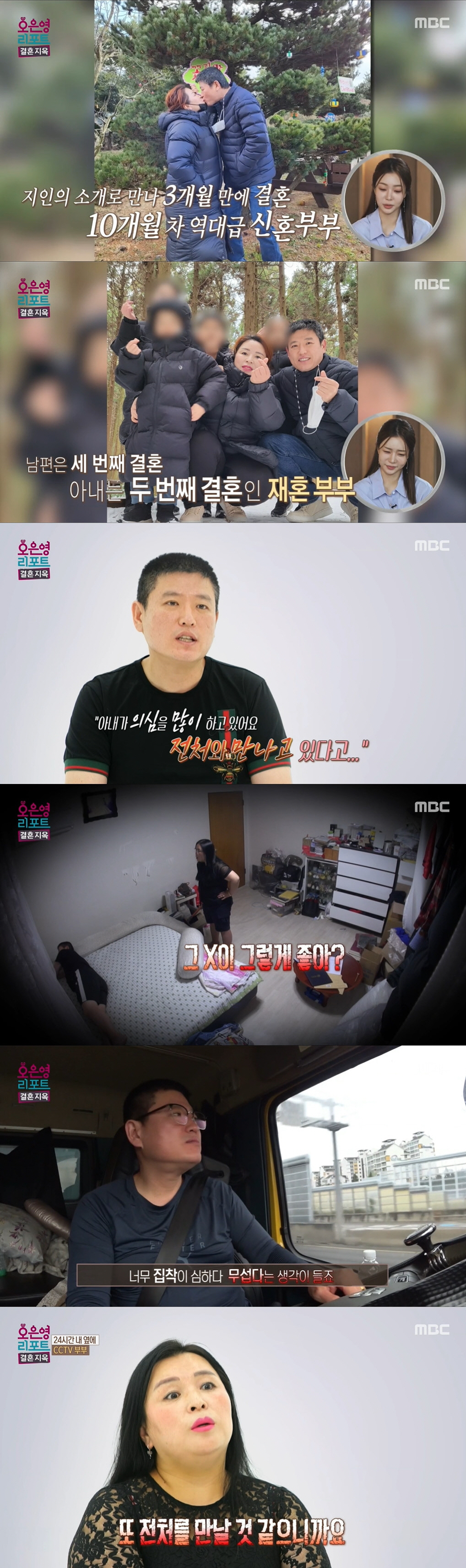 아내는 남편 퇴근 시간에 맞춰 전화를 걸었지만, 전화를 받지 않는 남편. 시계만 바라보며 남편에게 전화를 건 지 1시간 째. 1~2분 간격으로 걸려온 아내의 전화. 아내는 "불안하다. 혼자 일 나가서 2~3일 못 들어오면 불안하다. 또 전처를 만날 거 같다"고 털어놨다.
