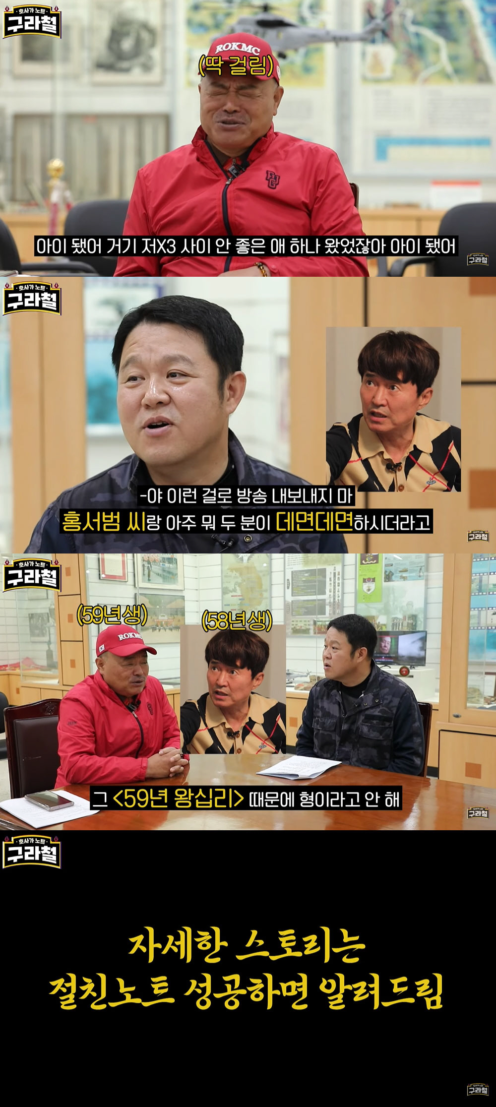 그러나 김구라는 "지난번에 아기 돌잔치를 열었는데 김흥국과 홍서범이 아주 데면데면하더라"라며 김흥국과 홍서범의 어색한 사이를 폭로했다. 김흥국은 김구라의 폭탄 발언에 "아이 또 시작이다"라며 "홍서범과 사이가 안 좋다. 이런 걸로 방송 내보내지 말라"고 질색했다.