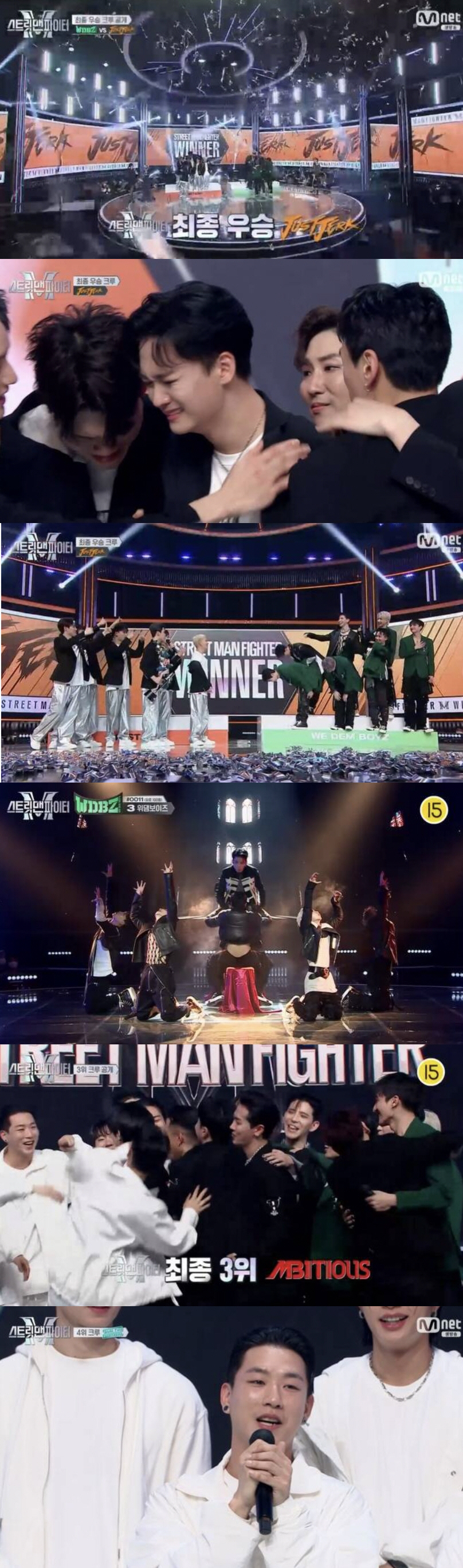 최종 우승 크루는 파이트 저지나 전문 평가단이 아닌 생방송 문자투표만으로 정해졌다. 그 결과 저스트절크는 9만 2321표를 얻어 압도적인 차이로 최종 1위를 차지했다. 앞서 탈락한 YGX, 어때 등이 모두 저스트절크가 우승할 것이라 말한대로였다. 뱅크투브라더스는 2만 5034표, 엠비셔스는 3만 2302표, 위댐보이즈는 4만 4274표를 획득했다.