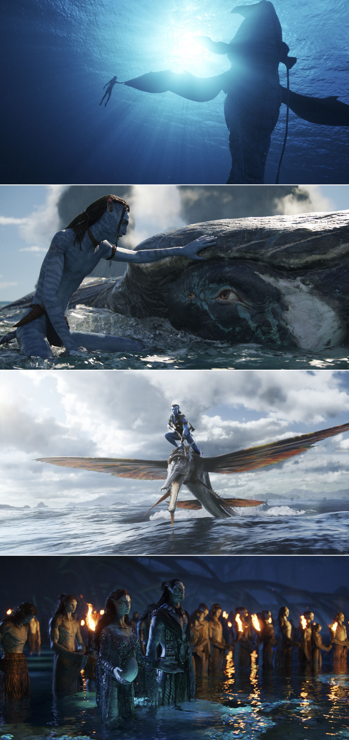 '아바타: 물의 길'은 조 샐다나, 샘 워싱턴, 시고니 위버, 우나 채플린, 지오바니 리비시, 스티븐 랭, 케이트 윈슬렛, 클리프 커티스, 조엘 무어, CCH 파운더, 맷 제랄드 등이 출연했고 제임스 카메론이 메가폰을 잡았다. '아바타2'는 오는 12월 개봉 예정이다.