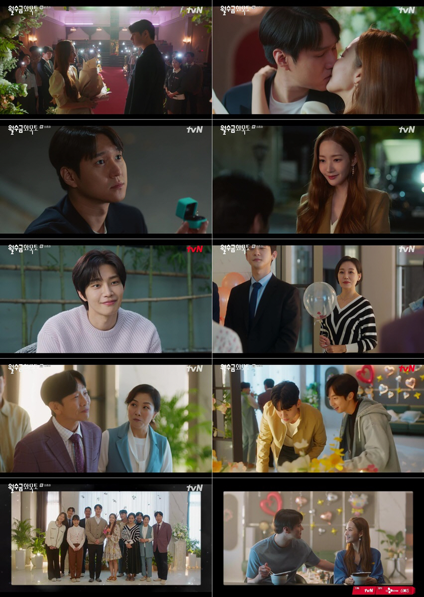 '월수금화목토'는 '월수금 커플' 최상은과 정지호의 로맨스 서사를 그렸다. 최상은과 정지호가 계약 결혼 마스터와 고객으로 만나 계약을 맺고 5년간 서로에게 스며드는 과정을 그리기도. 또한 '결혼'을 매개로 수 많은 고객들을 도왔지만 정작 마음 기댈 곳 없던 최상은이 가진 안타까운 과거사, 또한 전 아내에게 입은 상처를 안고 살아간 가정법원판사 정지호의 사연이 깊이 있게 보여졌다. 이처럼 켜켜이 쌓아 올린 서사는 두 사람이 서로에게 위로 받은 시간들의 소중함을 깨닫고, 수많은 우여곡절을 딛고 계약 부부에서 연인으로 발전, 비로소 진짜 부부로 거듭나는 과정을 통해 설렘을 안겼다.