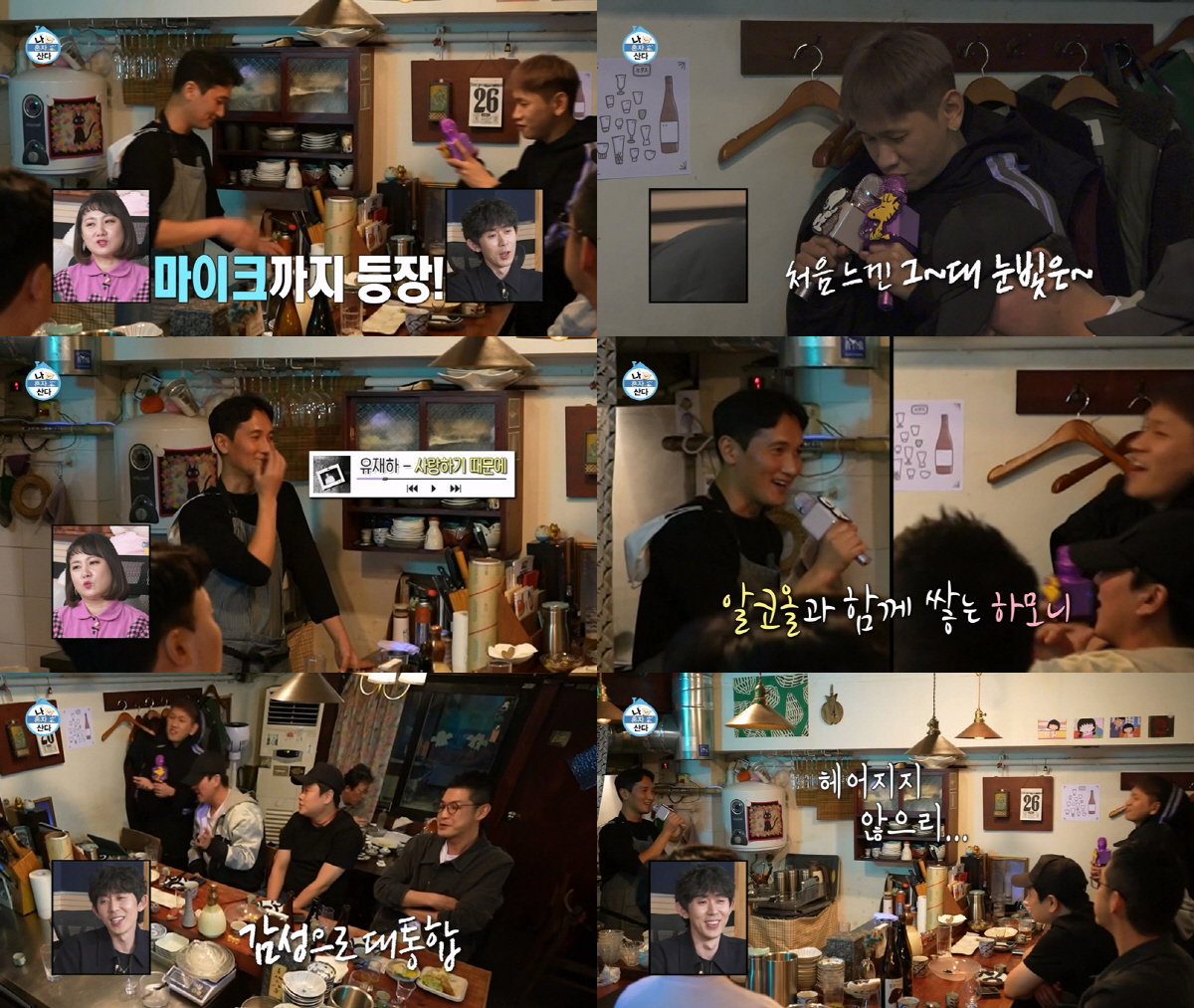 그런가 하면 크러쉬는 단골 선술집에서 가끔 튀어나오는 외향성을 자랑한다. 그는 쌍 마이크를 들고 유재하의 '사랑하기 때문에'를 감미롭게 불러 선술집을 흡사 콘서트 장르로 만든다. 이어 친한 선술집 사장님에게 마이크를 건네 듀엣을 제안한다.
