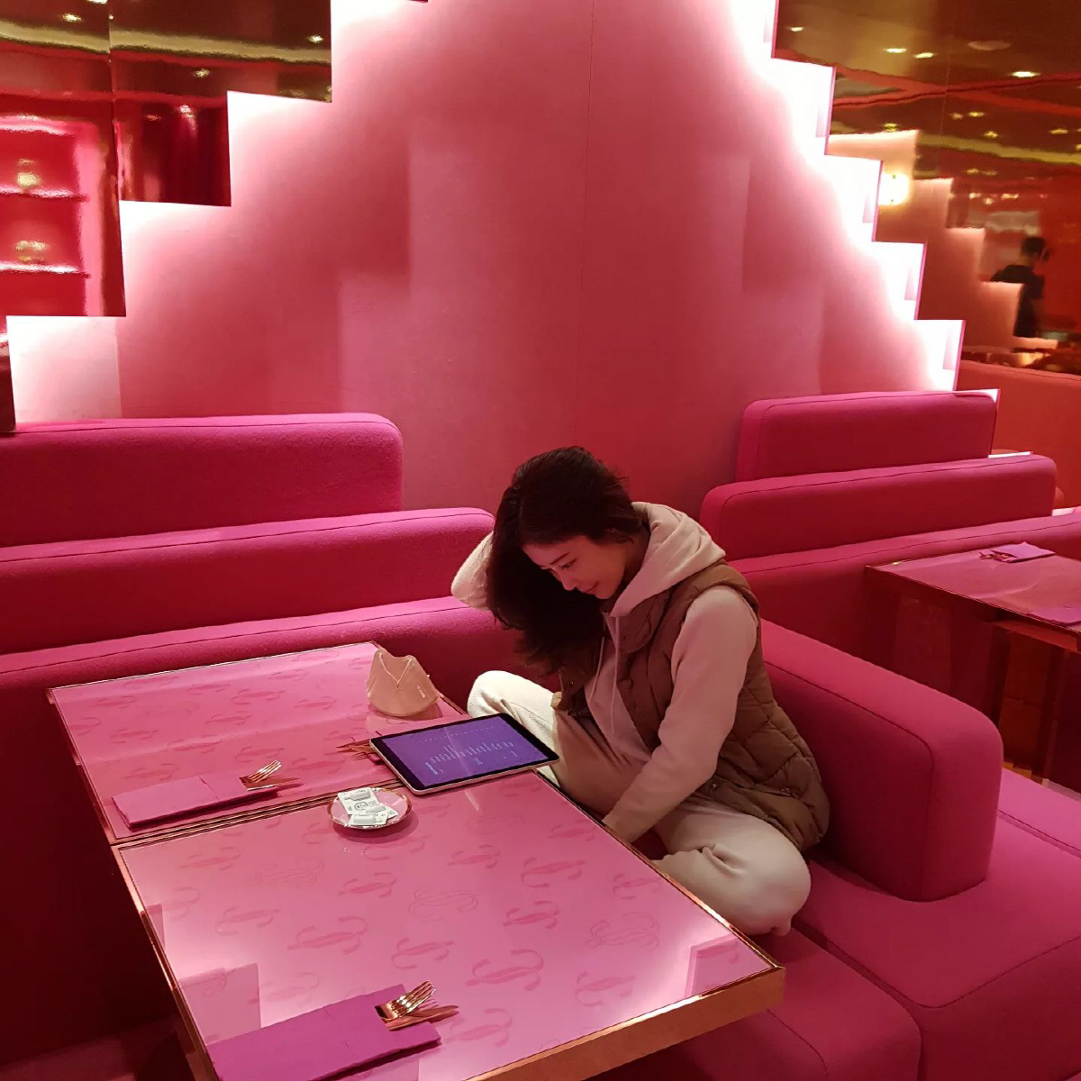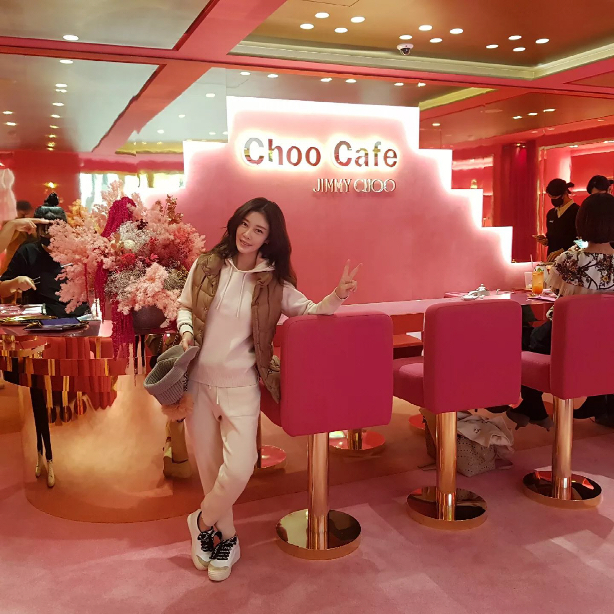 이지현은 트레이닝복 차림으로 화려한 카페를 방문한 모습. 아빠 다리를 하고 카페 의자에 편안하게 앉아 있는 모습이 눈길을 끈다.