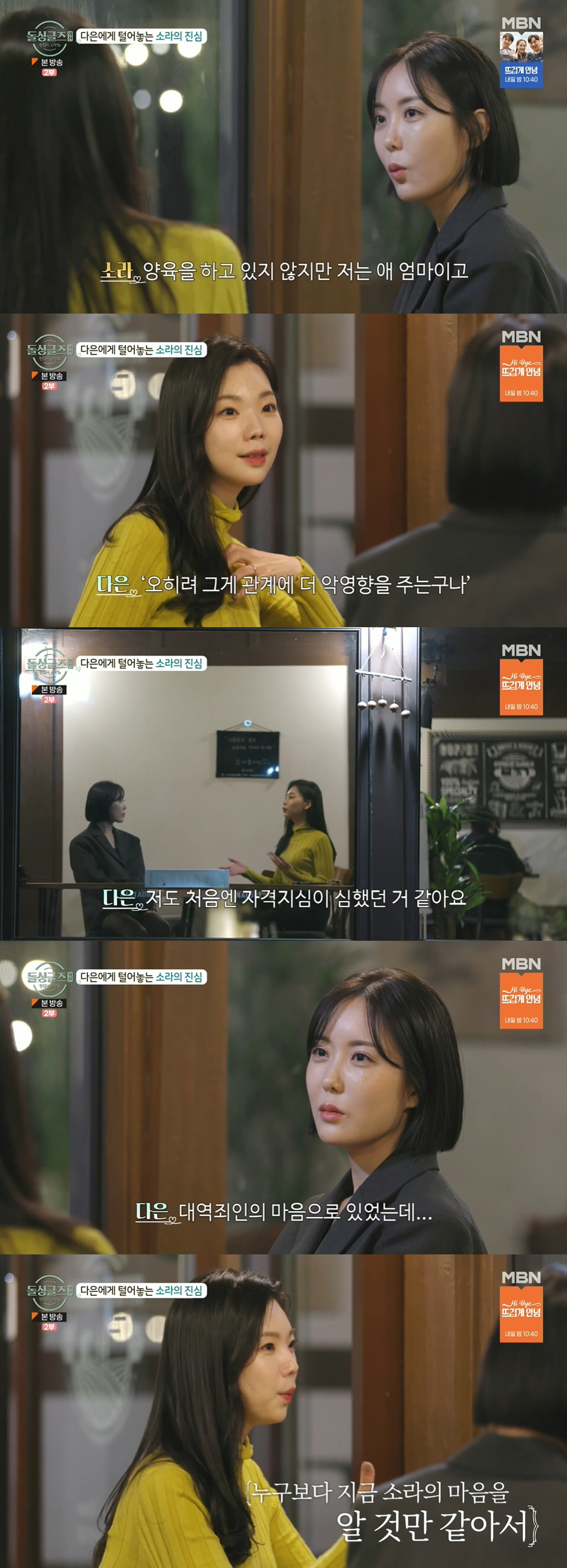 이소라와 이다은 단둘이 이야기하는 시간도 이어졌다. 이소라는 이다은에게 "저는 아이가 있으니 제가 (최동환의) 지인이라면 저와의 교제에 대해 '다시 생각해 보라'고 할 것 같다"며 고민을 털어놨다. 비슷한 상황이었던 이다은은 "저는 자격지심이 심했고 뭔가 다 미안했다. 오빠와 육아도 계속 같이 하니까 대역죄인 마음으로 있었는데 악영향을 준다는 생각을 하고 나서, 잘해줄 때 잘해주자고 편하게 마음먹게 됐다"며 용기를 줬다.