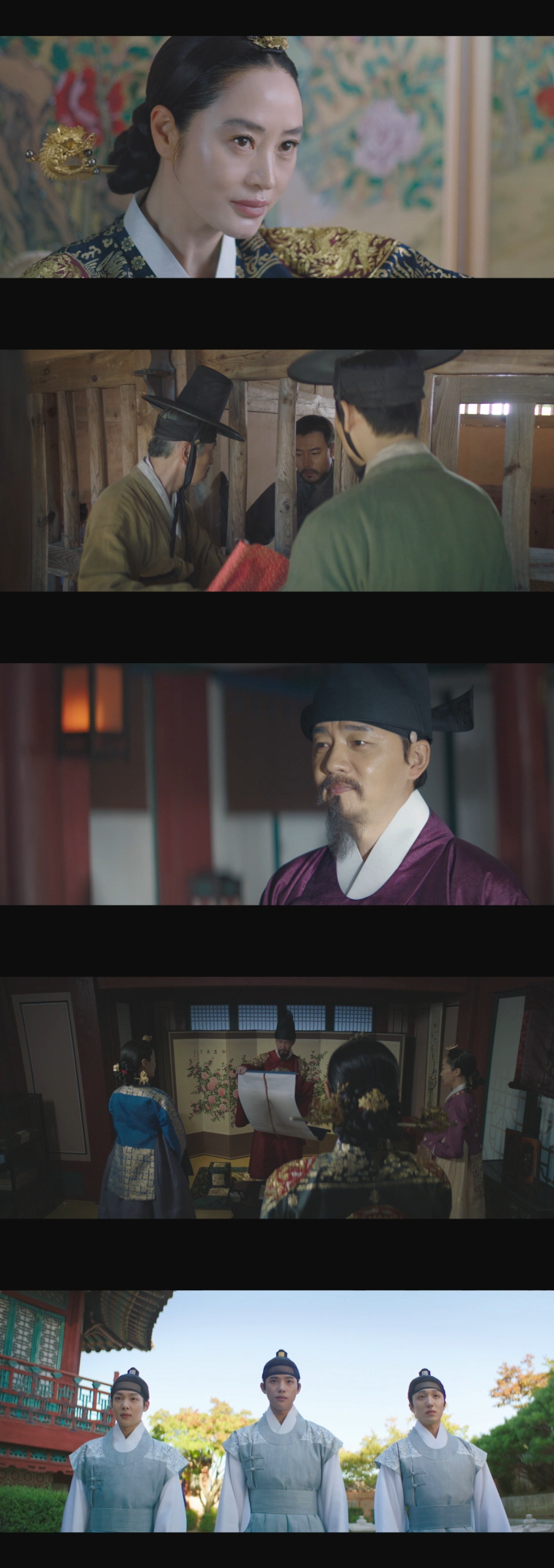 한편, 숨통을 조이고 있음에도 대비가 자신만만한 이유가 무엇인지 알게 된 화령은 성남이 왕의 친자가 아니라는 비방서를 손에 움켜쥐고 차오르는 슬픔과 분노를 삼켜냈다. 이것이 대비의 숨은 패임을 알아챈 화령은 다시 한번 대비를 향해 활시위를 당겼다. 바로 성남대군을 죽이고 영의정(김의성 분)에게 덮어씌우려 한 대비처럼 영의정이 계성대군에게 한 짓을 대비에게 덮어씌운 것. '눈눈이이'로 맞선 화령의 독기 서린 반격에 대비는 "대체 원하는 게 뭡니까"라며 한발 물러섰다.