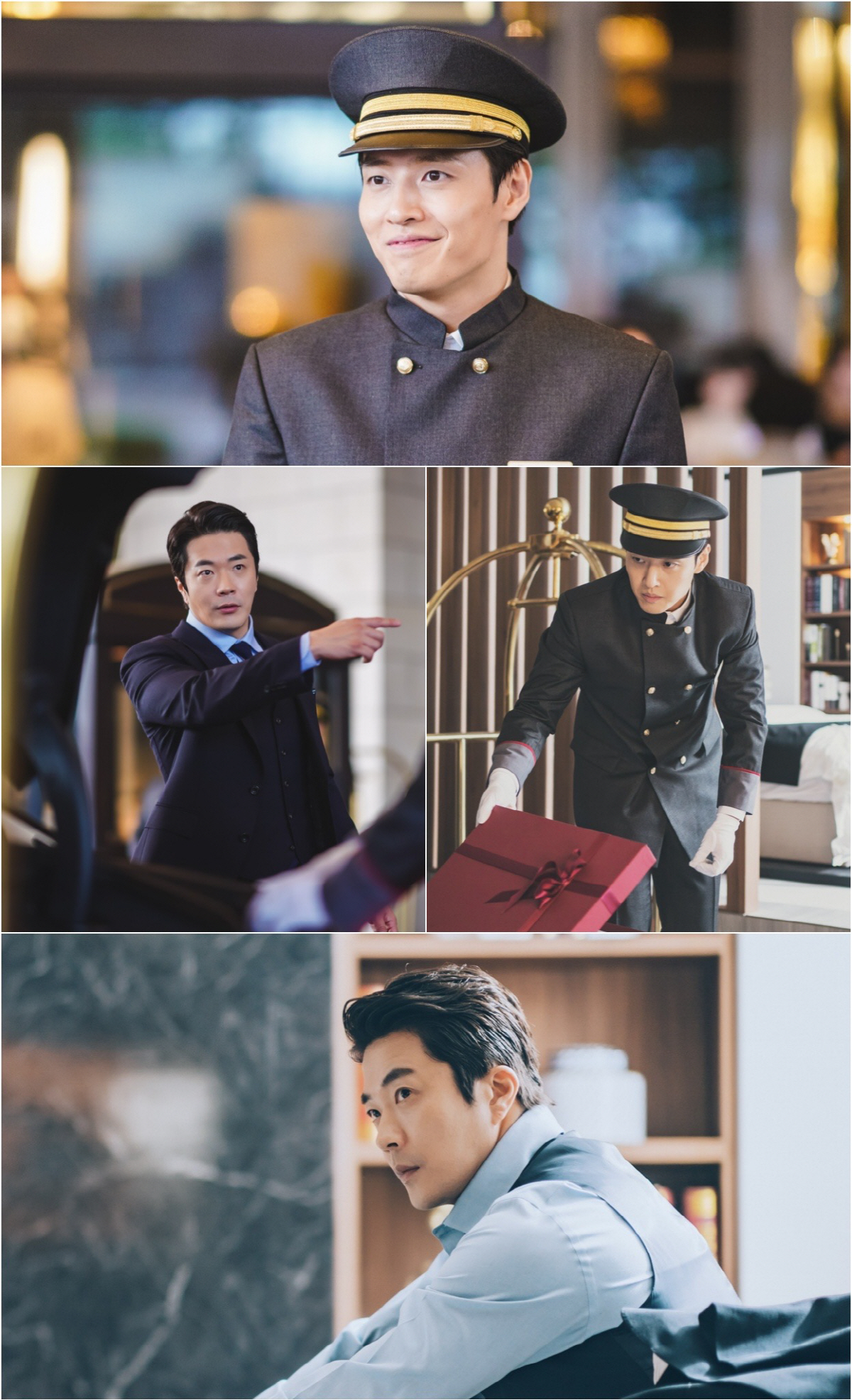 오늘 5회 본방송에 앞서 공개된 스틸에서는 호텔 낙원의 포터 서비스를 담당하는 벨보이가 된 유재헌과 날카로운 표정을 한 배동제의 모습이 담겨 있다.