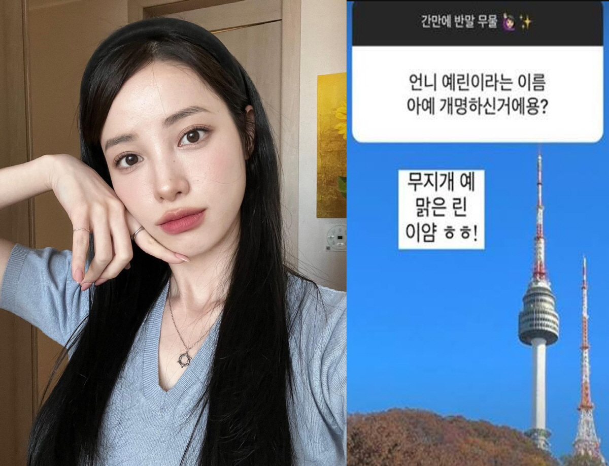 또 다른 팬은 "예린이라는 이름 아예 개명한 거냐"고 물었고, 유깻잎은 "무지개 예, 맑은 린이얌ㅎㅎ!"이라고 이름 뜻을 알렸다.