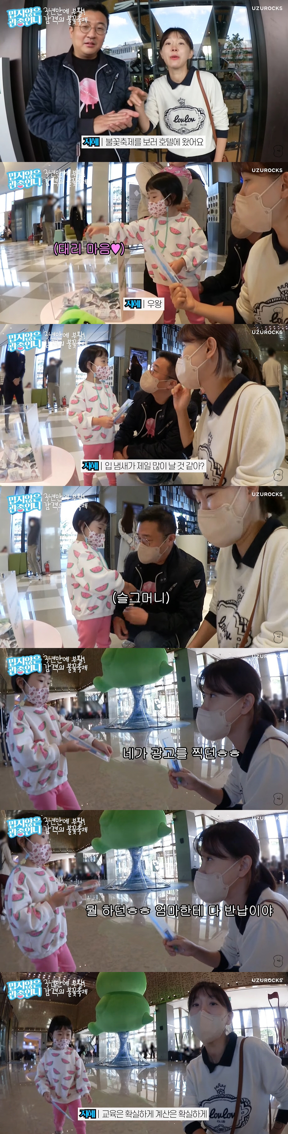 이지혜는 "불꽃축제를 보러 호텔에 왔다. 불꽃축제는 가본 적 없다"고 했다. 남편 문재완이 가족과 함께 불꽃축제를 보기 위해 서프라이즈로 미리 호텔을 예약해둔 것. 그때 딸 태리 양은 호텔에 마련된 기부함에 천 원을 기부, 선물로 칫솔을 받았다. 이에 이지혜는 "엄마, 아빠 이모 중에 누가 치카치카 안해서 입 냄새 많이 날 것 같냐"고 물었고, 태리 양은 칫솔을 아빠에게 건네 웃음을 안겼다.