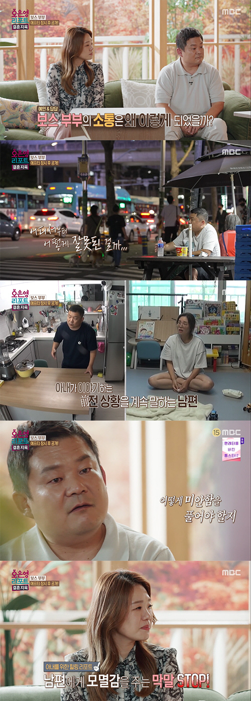 이후 아내의 이야기도 그려졌다. 아내는 대답을 해주지 않는 남편에게 섭섭함을 표현했고, 아내는 답답해 했다. 아내는 "지금은 감정적인 부분만 남아있다. 그래서 사소한 걸로 싸우는 것 같다. 제가 결혼 하고 나서 친오빠가 교통사고가 났었다. 병원에 바로 가고 싶었지만 남편을 배려해서 아침을 먹고 출발하려고 했는데 갑자기 콧노래를 부르면서 춤을 추더라. 동생이 교통사고 나서도 춤을 출 수 있냐라고 했더니. 숟가락을 던지면서 '무슨 소리를 그렇게해'라며 집을 나가버렸다. 그날 밤에 술에 취해 돌아온 남편과 대화를 못했다. 잘못을 하고도 노력을 하지 않았다"라고 이야기했다.