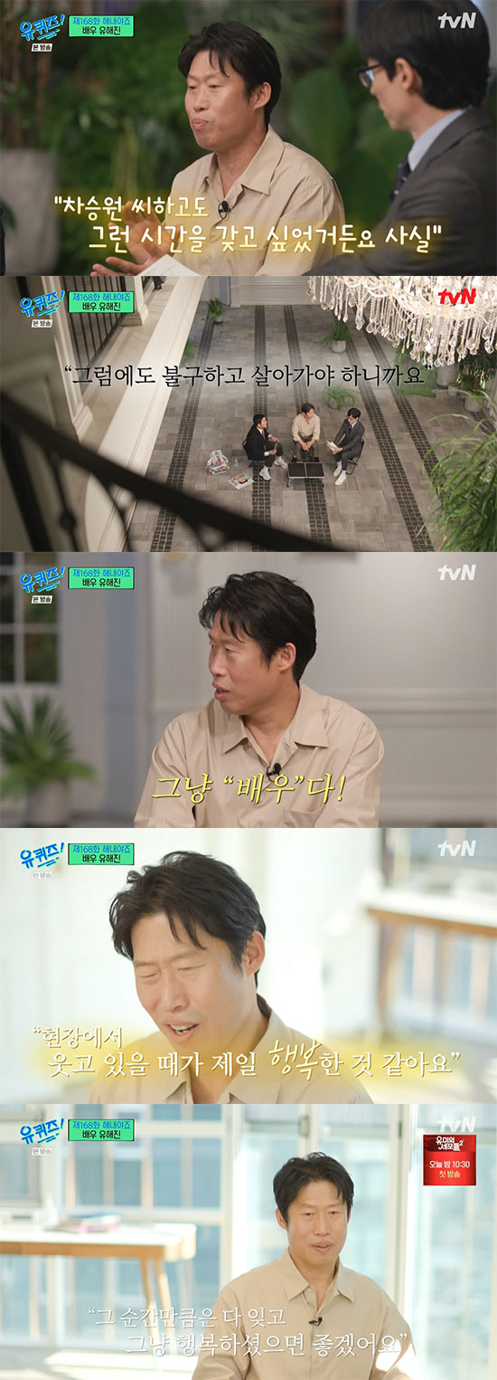 "반복되는 캐릭터에 대학로에서 연극을 하기도 했다"는 유해진은 "그때 차승원이 '어떻게 늘 좋은 역할만 하나. 영화 쪽에 거리를 두지 말고 가까이 두려고 해라'는 조언을 해줬다"면서 주위 사람들의 이야기를 잘 듣는 면모를 보였다.