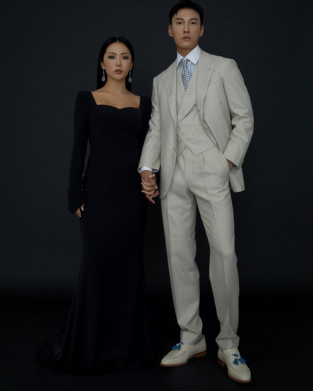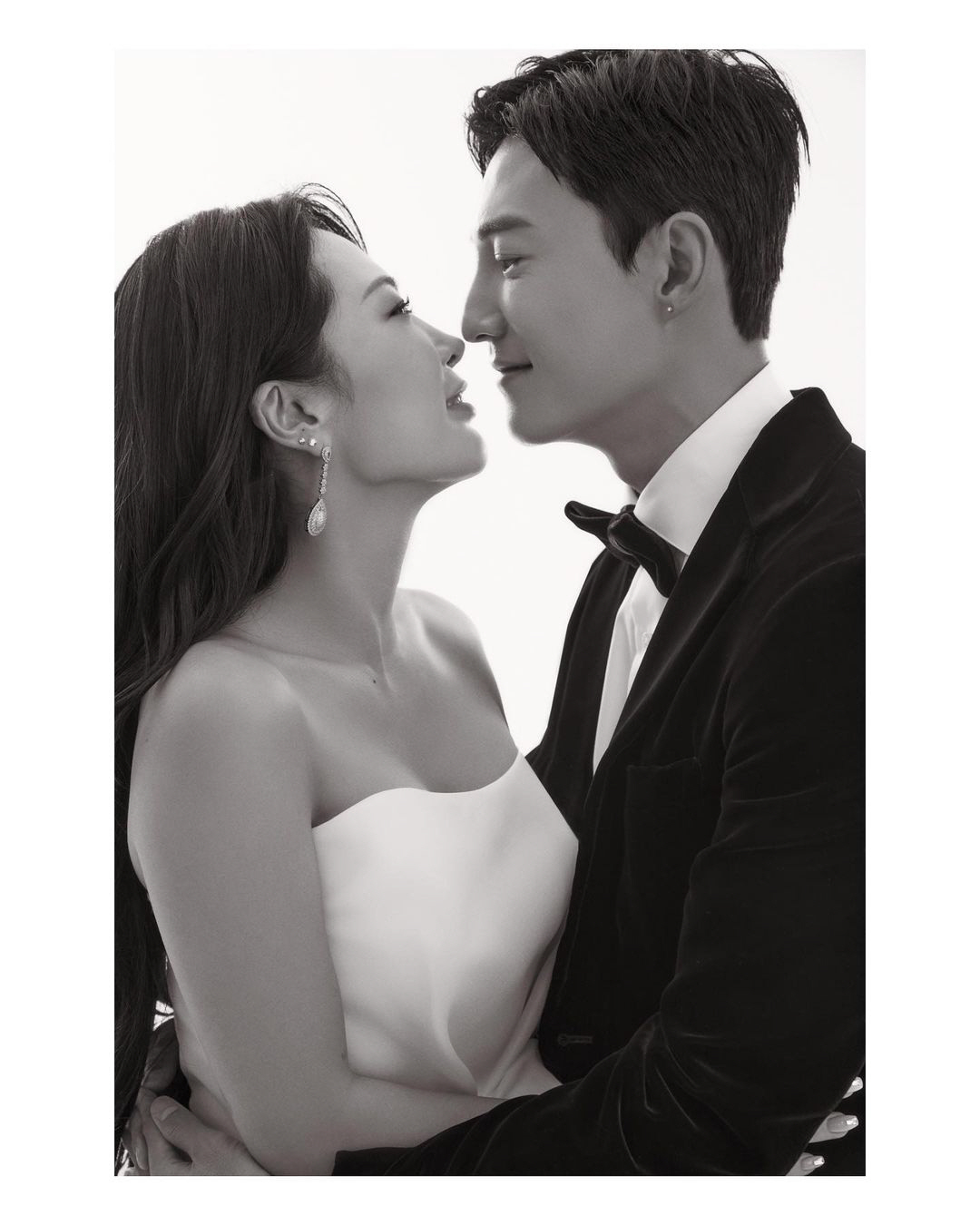 허니제이는 결혼을 하루 앞두고 웨딩 화보를 공개했다. 새하얀 웨딩드레스 자태를 선보이고 있는 허니제이의 모습은 아름다웠다. 블랙 원피스를 입고 짙은 메이크업으로 강렬하면서도 섹시한 매력도 뽐냈다. 예비신랑은 큰 키를 자랑하며 수트도 완벽하게 소화, 훈훈한 비주얼이 눈길을 끈다.
