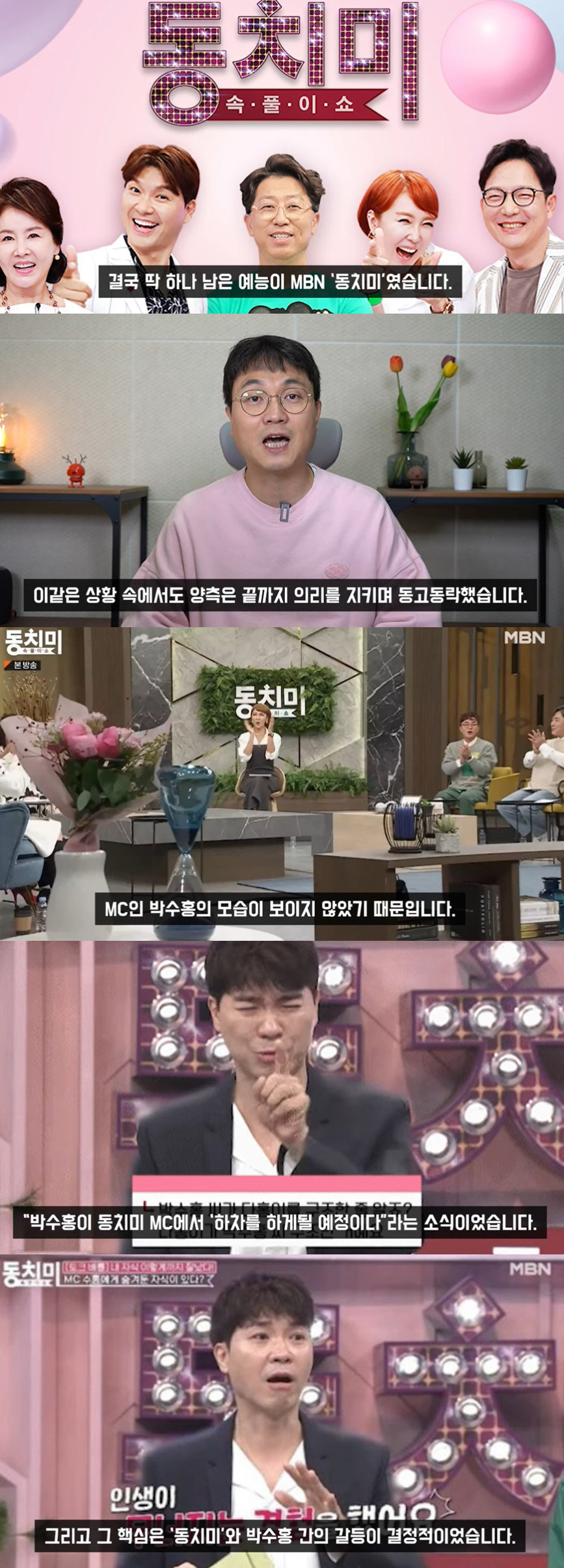 [스포츠조선닷컴 이우주 기자] 방송인 박수홍이 MBN '동치미'에서 갑자기 사라지게 된 이유가 '손절'이라는 주장이 제기됐다.