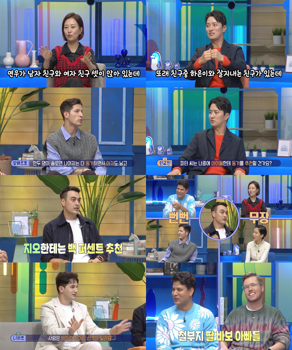 알베르토는 "친구 10명 중 9명이 동거하고 있다. 그중에는 아이를 낳은 친구들도 있다"며 나라마다 동거에 대한 문화 차이가 있다고 귀띔했다고. 이에 물 건너온 아빠들 사이에서도 동거와 관련한 의견이 갈리며 문화 차이에도 관심이 쏠린다.