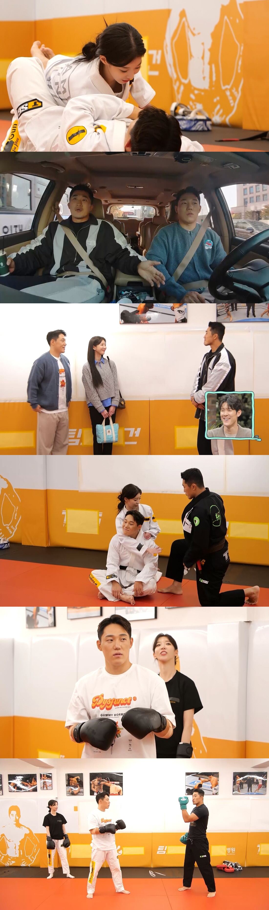 잠시 후, 두 사람은 김동현이 운영하는 체육관에 도착하고, 임사랑도 깜짝 방문해 김동현과 처음 만난다. 김동현은 임사랑과 인사를 나눈 뒤, 곧장 "요즘 같은 시대에 자기방어는 필수"라며 남자를 제압할 수 있는 주짓수 기술을 알려주겠다고 한다. 본격 수업에 들어간 임사랑은 김동현이 모태범에게 '백초크' 기술을 걸어보라고 하자 차마 힘을 넣지 못하고, 이를 지켜보던 '멘토' 신봉선은 "저건 그냥 백허그 아니야?"라고 '찐' 반응을 보여 웃음을 안긴다.