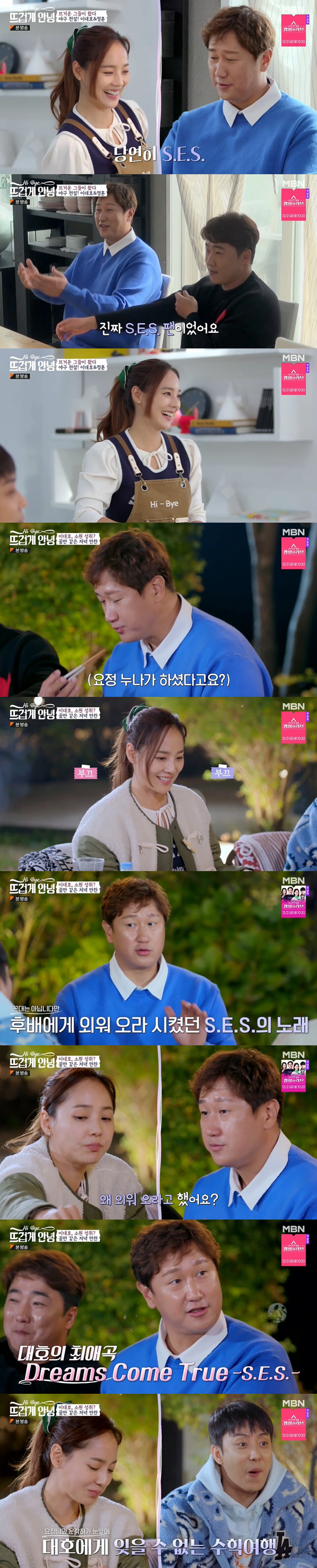 이대호는 유진을 만나자마자 "S.E.S 진짜 팬"이라고 고백했다. 이대호의 상기된 모습에 황제성은 "팬심에서 진정성이 느껴진다. 어느 정도인지 궁금하다"고 물었고, 이대호는 "고교 시절 제일 좋아했다. 진짜 후배한테 처음으로 외워오라고 시켰던 노래가 S.E.S 노래였다"고 너스레를 떨었다.