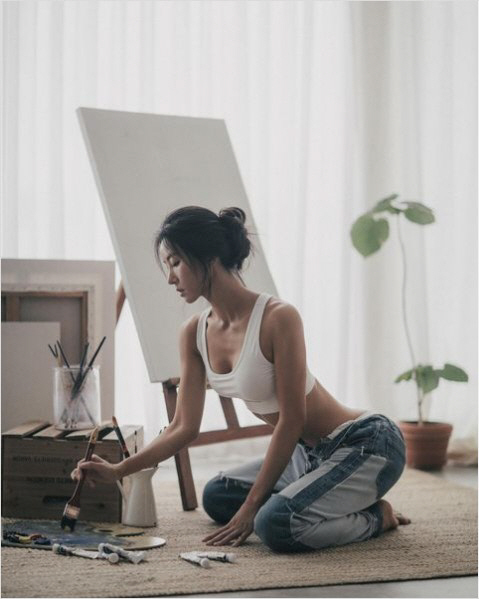 청바지에 흰색 톱을 입은 김정민은 붓을 들고 우아한 매력을 자랑한다. 이어 "가장 좋아하는 컷 입니다"라는 글과 함께 복근 근육이 돋보이는 김정민의 몸매가 시선을 사로 잡는다.