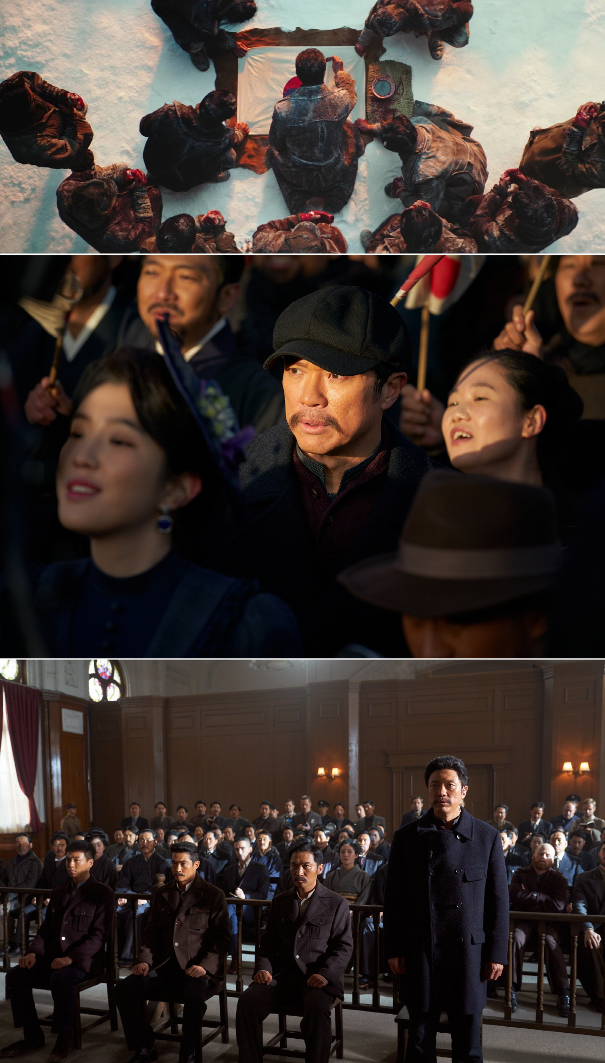'영웅'은 1909년 10월, 하얼빈에서 이토 히로부미를 사살한 뒤 일본 법정의 사형 판결을 받고 순국한 안중근 의사가 거사를 준비하던 때부터 죽음을 맞이하던 순간까지, 잊을 수 없는 마지막 1년을 그린 뮤지컬 영화다. 정성화, 김고은, 나문희, 조재윤, 배정남, 이현우, 박진주 등이 가세했고 '해운대' '국제시장'의 윤제균 감독이 메가폰을 잡았다. 오는 12월 개봉 예정.