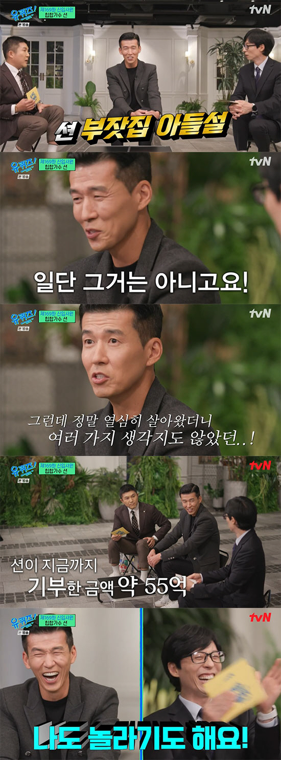 또한 "기부한 금액이 2년 전에 55억 원이다"라는 유재석의 말에, 션도 "나도 놀라긴 한다"며 웃었다. 그러면서도 "시작은 1만원이다. 작은게 계속 반복되면 엄청난 대단한 일을 만들어낼 수 있다. 그러면 진짜 세상이 변한다"는 소신을 밝혔다.