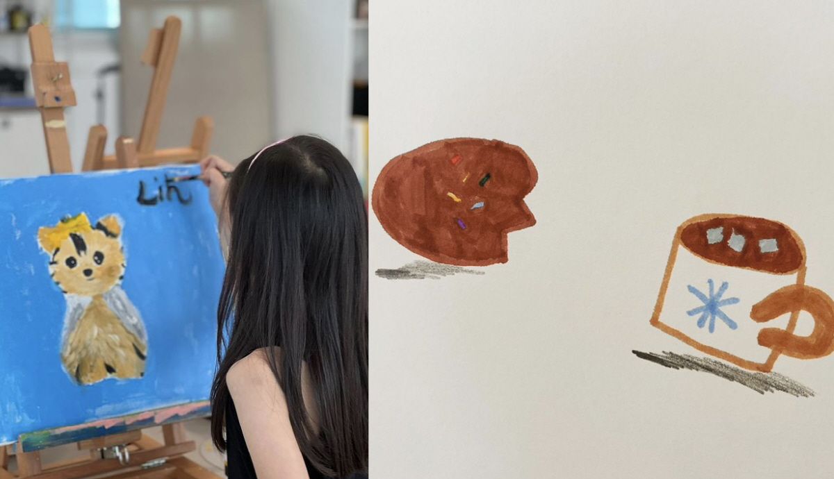함께 공개된 사진에는 한입 베어 문 듯한 쿠키와 코코아가 담겼다. 미술을 전공한 권상우를 쏙 빼닮은 모습. 이에 한 누리꾼은 "리호의 그림은 표현이 아주 정확해서 놀라워요. 미술로 세계적인 스타가 될 것 같아 너무 기대되어요"라며 감탄했고, 손태영은 답글에 하트 이모티콘을 적으며 화답했다. 손태영은 앞서도 그림 그리는 리호의 모습, 리호의 작품을 공개해 화제를 모은 바 있다.