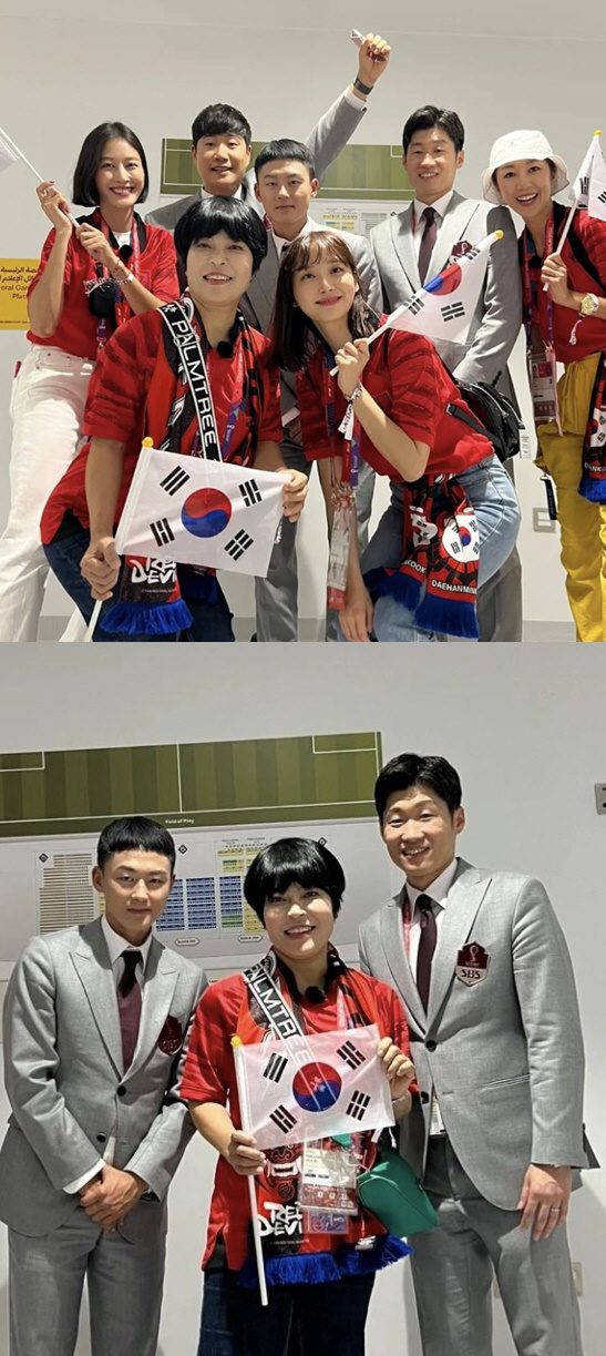 25일 조혜련은 "어제 경기가 눈앞에 생생해서 잠을 제대로 못 잤어요. 경기 끝나고 우연히 만난 김병지 감독님 너무 반가웠어요. SBS 축구 해설위원 박지성 님, 이승우 님, 배성재 캐스터!"라고 적었다.