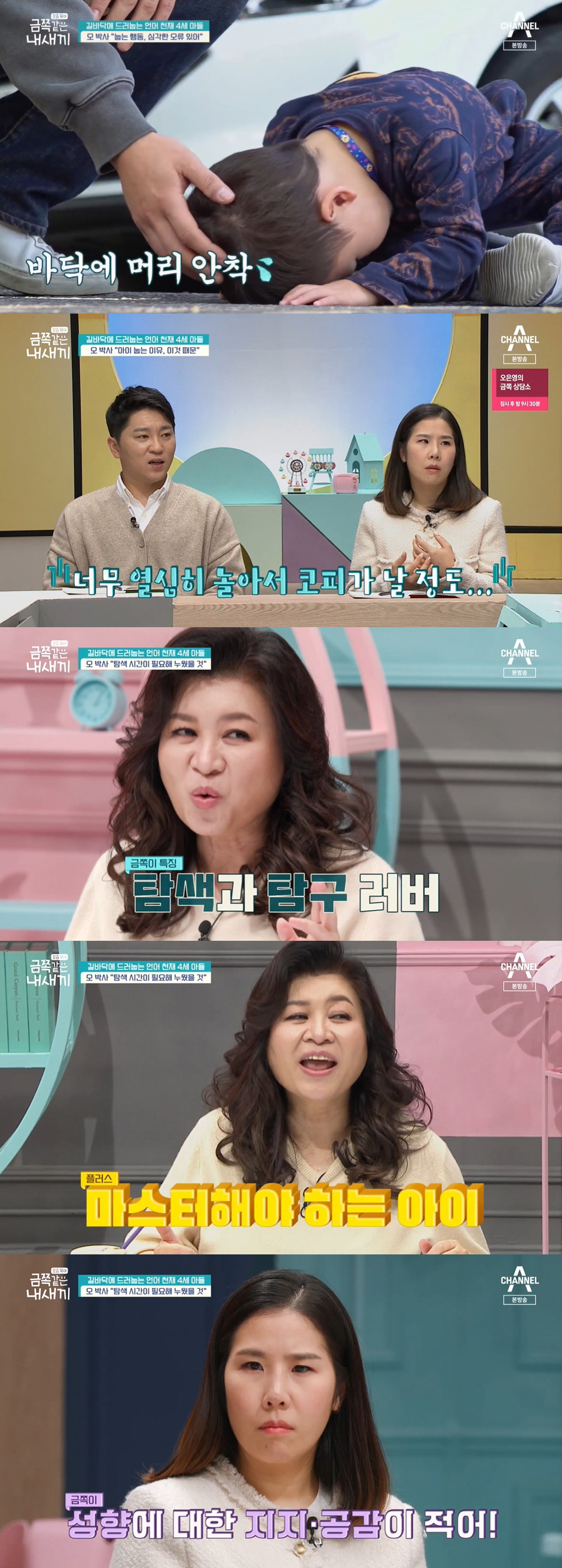 금쪽이는 '동생이 다가올 때 마음은?'이라는 질문에 "내 거 만지지마. 싫어"라고 답했다. 이어 '친구와 함께 있을 때 마음은?'이라는 질문에는 "혼자가 좋다"고 했다. 그러면서 '바닥에 누워 있을 때 너의 마음은?'이라는 질문에는 "소리 질러서 미안하다. 사랑해요"고 했다. 36개월이 믿기지 않은 또렷한 마음이 소리에 엄마와 아빠는 눈물을 흘렸다.