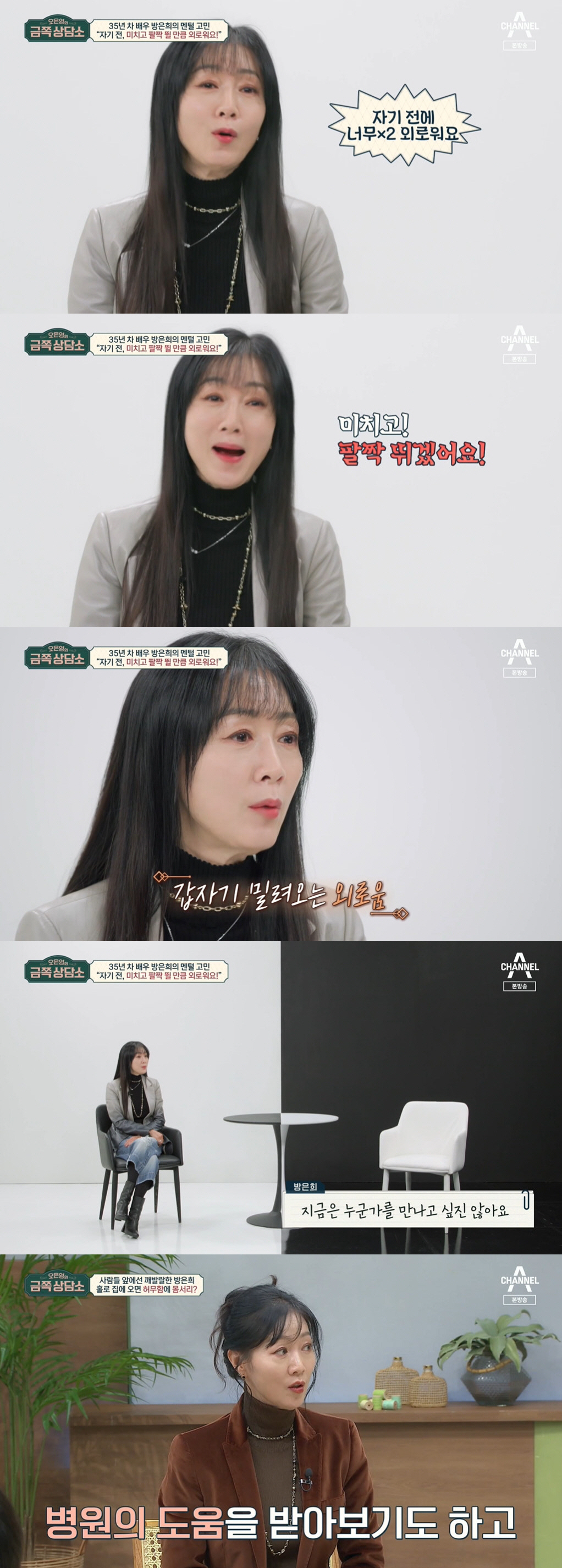 이날 방은희는 "자기 전에 미치고 팔짝 뛸 만큼 외롭다"며 고민을 털어놨다. 침대에 누우면 순간 드는 외로움에 번쩍 잠이 깬다고 밝힌 것. 방은희는 "어릴 때부터 인형이 많았다. 자기 전 인형의 손을 잡고 '나 좀 자게 도와줘'라며 인형한테 의지를 많이 한다"고 했다. '결혼이나 연애를 하면 좋아지지 않을까요?'라는 말에 방은희는 "지금은 누군가를 만나고 싶지 않다"면서도 "앞으로 그려지는 나의 모습에 '이렇게 늙어 가면 어떡하지?'라는 고민 때문에 잠을 못 잘 때도 있다"고 털어놨다. 잠을 못 자 약까지 처방받았다고 말해 안타까움을 자아냈다.