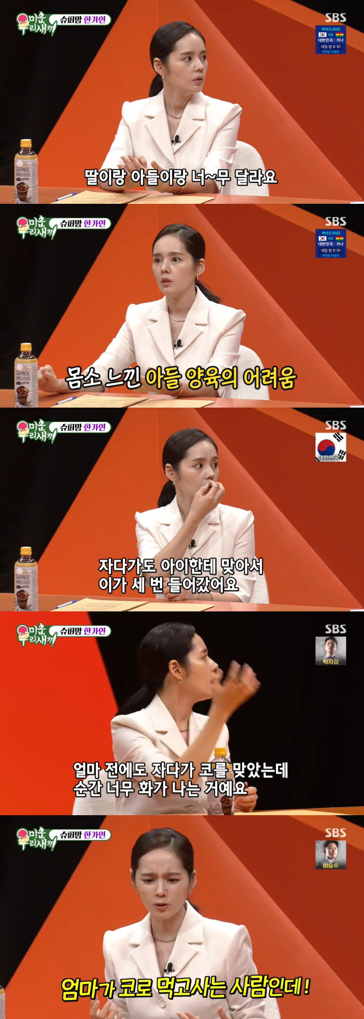 [스포츠조선닷컴 이우주 기자] '미우새' 한가인이 아들과 딸 양육 고충을 털어놨다.
