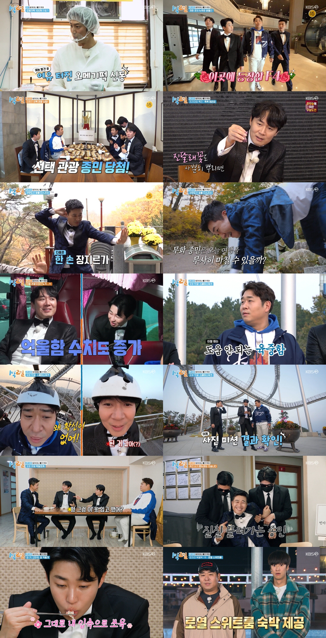 푸짐한 박달대게 한상차림을 얻게 된 연정훈, 문세윤, 딘딘은 수련을 마치고 돌아온 김종민과 재회했다. '이성에게 가장 인기가 많을 것 같은 멤버는?'이라는 주제로 두 번째 화백회의에 나선 이들은 호화로운 대게 먹방을 펼치며 토론을 이어가는 동시에, 화를 내지 않기 위해 노력하기도 했다.