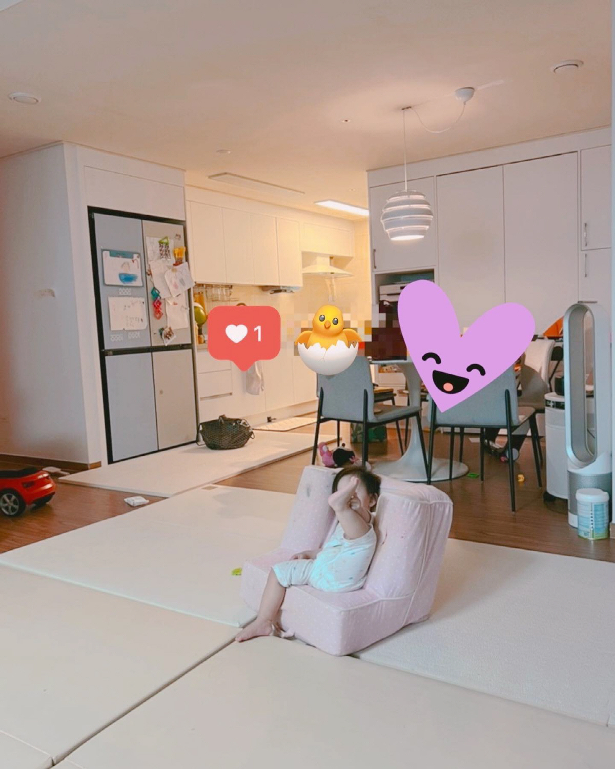 이세은은 어린 두 딸을 독박육아하면서도 집을 깔끔하게 정리해 놓고 사는 모습. 그는 "아기를 너무너무 좋아하는 나. 강제로 외출금지하면서 지내는 요즘. 어느 순간 아이들과 찐~~하게 보내는 이 시간들을 즐기고 있는 걸 깨달았지 뭐예요! 큰일이야. 즐기고 있어!"라며 육아가 체질임을 밝혔다. 이어 "휴 욱하고 후회나 하지 말자. 셀프 초상권 보호 중인 둘째와 우당탕탕 우리 집"이라고 전했다.