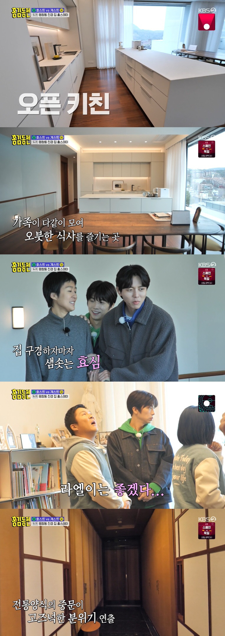 조세호에 이어 호스트가 된 홍진경. 멤버들은 홍진경의 평창동 3층 집을 처음으로 둘러봤다. 홍진경의 집에는 주방만 두 개가 있었다. 집에 들어가자마자 멤버들의 탄성이 나왔고, 주우재는 홍진경을 "엄마. 내가 효도할게"라며 감탄했다.