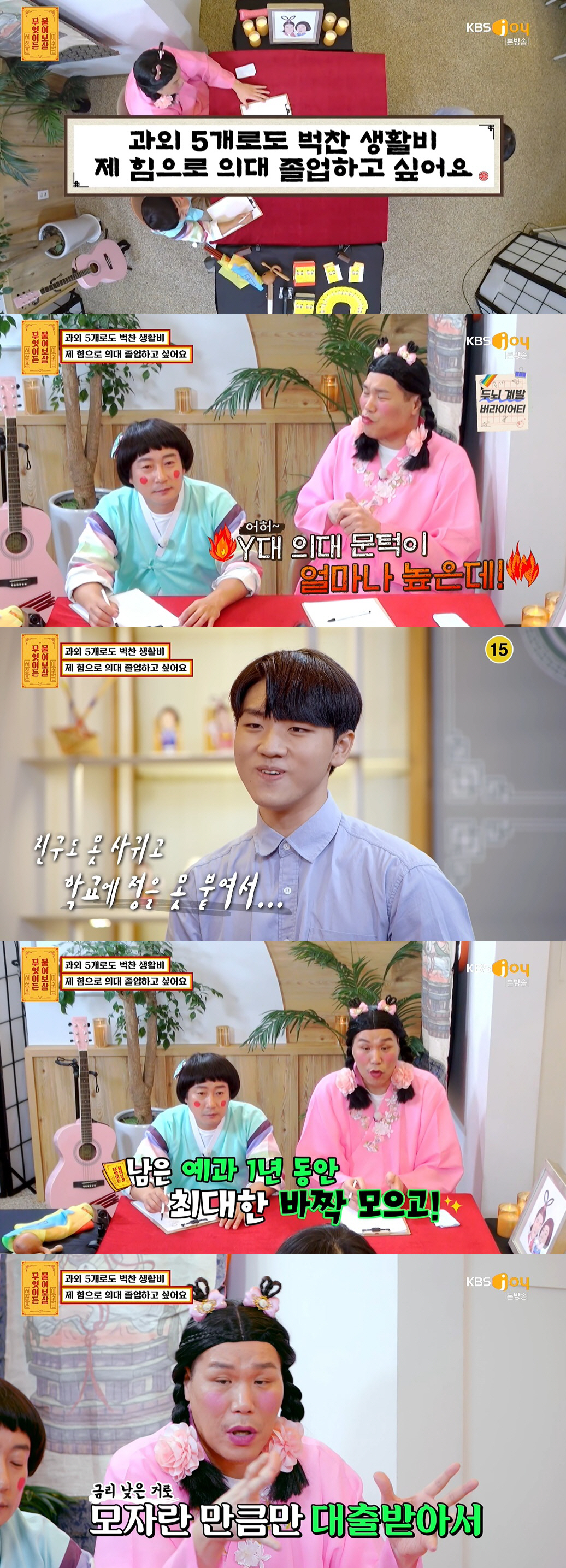 다음 의뢰인은 "과외 알바 5개를 하고 있는데 빚을 져야 하는 상황이다. 의대를 다니고 있는데 학업과 과외를 병행하기 힘들어 생활비를 벌어놓고 써야 한다. 형편이 여유롭지 않아 제 힘으로 의대를 졸업하고 싶다"며 고민을 토로했다. 서장훈은 의뢰인이 의대를 다니기 전, Y대 화공생명공학과를 다녔다고 말하자 "우리나라 최고 대학에 다니다가 갑자기 의대를 간다고 다른 대학을 갔다고? 더 이상 해줄 얘기가 없다"고 토라져 웃음을 자아냈다. 이에 의뢰인은 "작년 Y대 다닐 때는 시험도 비대면으로 봐서 학교를 한 번도 못 갔다. 정을 못 붙인 게 큰 것 같다"고 이야기했다.