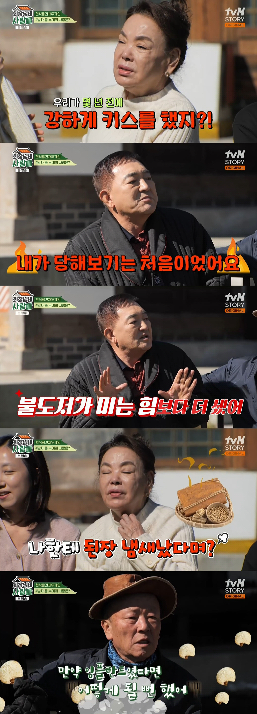 박원숙은 "며칠 전 집 목욕실에서 넘어져서 큰일 날 뻔 했다. 턱에 시커멓게 멍이 든 게 점점 빠지고 있다"면서 "불행 중 다행의 연속이다. 조금만 위로 다쳤으면 이가 나갈 뻔 했다"고 해 놀라게 했다. 이어 "응급실에서 턱을 네 바늘 꿰맸다"고 했고, 김수미는 "속상하다"며 속상한 마음에 눈물을 흘렸다. 아픈 와중에서 촬영 걱정했다는 박원숙. 그는 "촬영을 잘했다. 아침에 몸이 움직여질까 했는데, 움직여지더라"고 했고, 김수미는 "한번 만 또 넘어지면 가만 안 둔다. 몸 조심해라"고 했다.