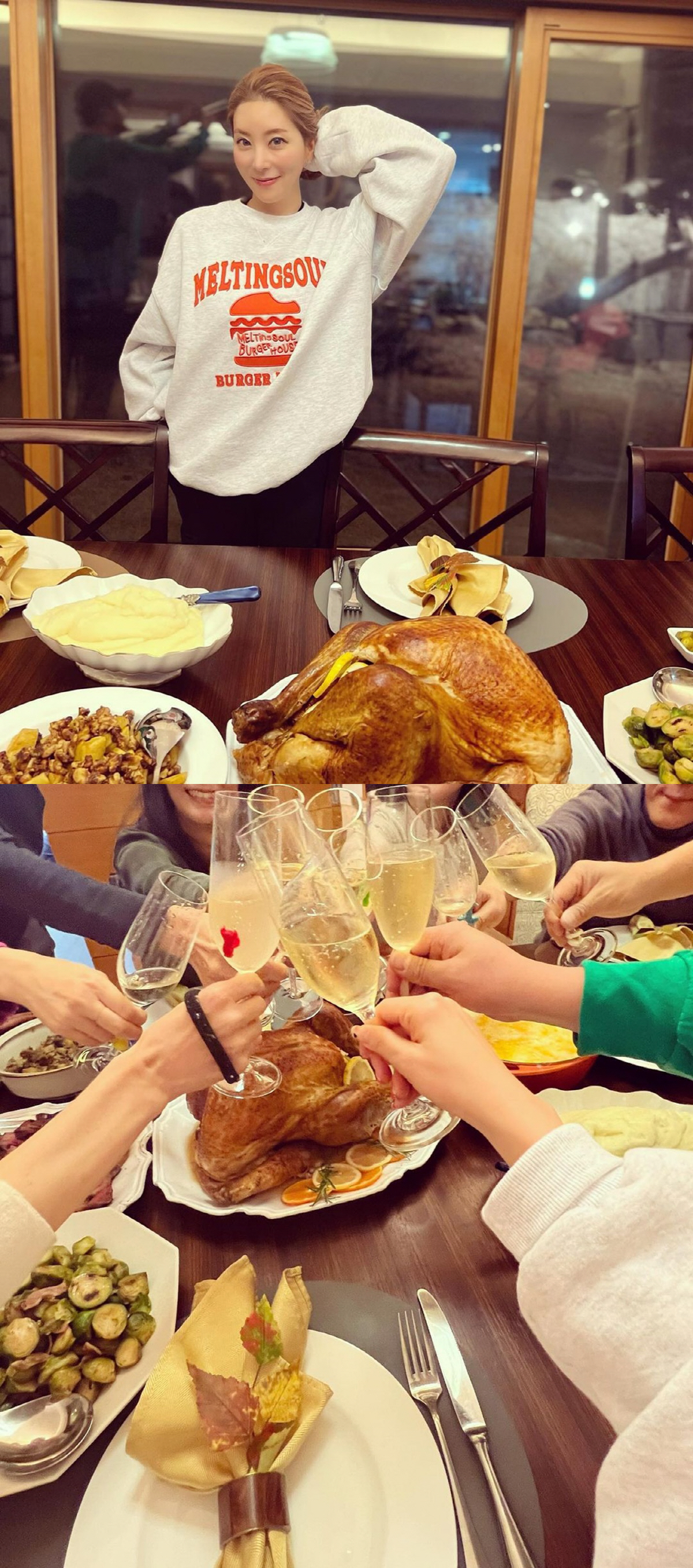 사진에는 지인들과 함께 저녁 식사를 즐기고 있는 김애리 김태우 가족의 모습이 담겨있다. 멜팅콘, 회, 칠면조까지 성대하게 차려진 한 상이 군침을 자극한다. 특히 김애리는 "부잣집 막내아들 옴 #오늘 아님"이라며 저녁식사 모임에 참석한 송중기의 사진도 공개해 눈길을 끌었다.