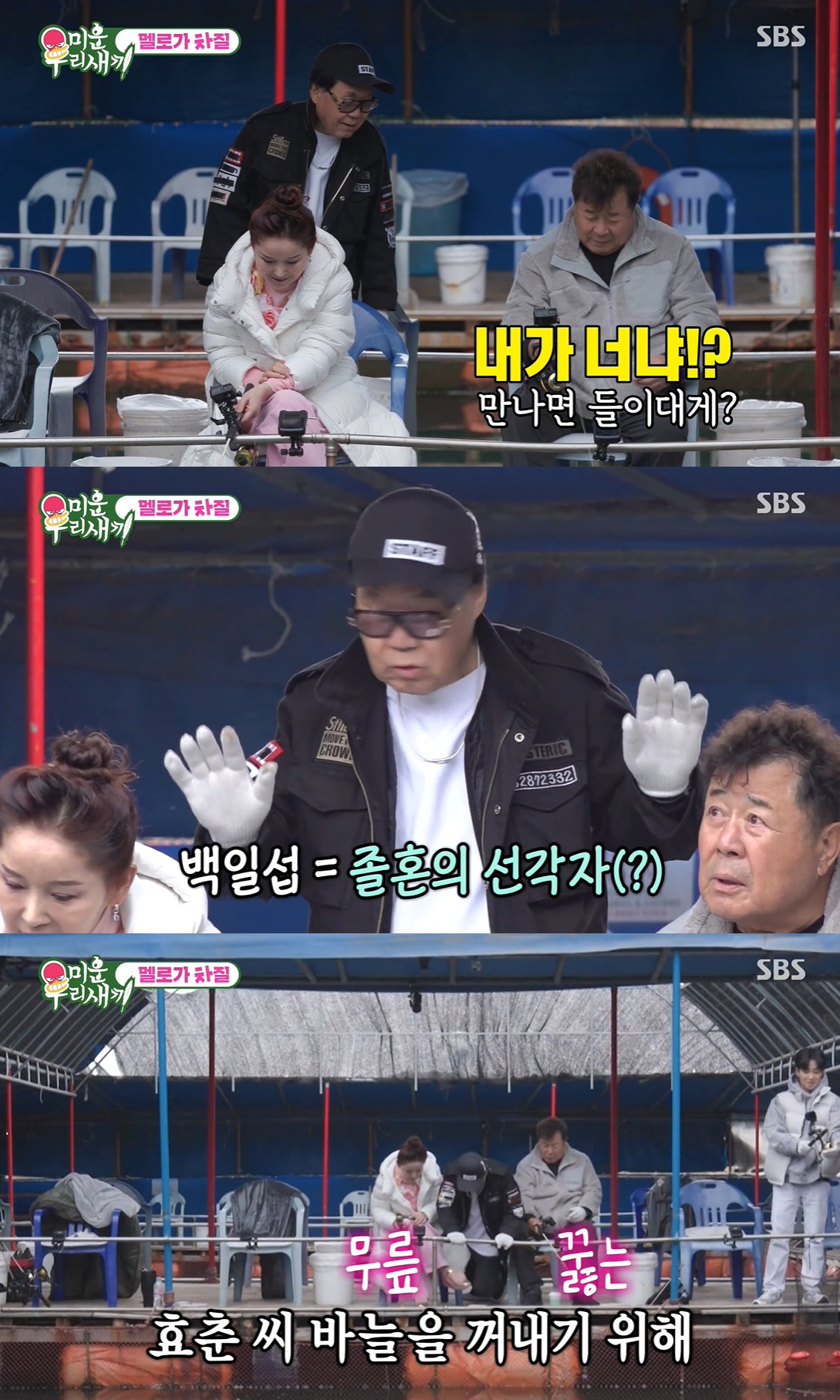 이효춘이 백일섭을 보고 반가운 마음에 "오빠가 낚시한다는 거 상상이 안돼"라고 말하자 조영남은 "재한테 오빠라고 하지 마. 거지같은 친구야"라며 자신에게도 오빠라고 부르라고 요구했다. 하지만 이효춘은 "아니야 선을 그어야 돼. 선배님이야"라고 말해 웃음을 자아냈다.
