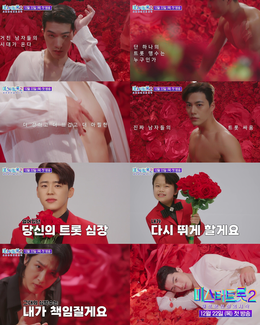 또 다른 티저에서는 활활 타오르는 야성미의 '트롯 맹수'들이 등장, 섹시한 자태를 선보였다. 영상 속 참가자들은 압도적인 피지컬을 자랑하며 울끈불끈한 근육을 서슴없이 드러내고, 입이 딱 벌어지는 묘기까지 선보인다. "더 강하고, 더 뜨겁고, 더 아찔한 진짜 남자들의 트롯 싸움"을 예고하며 방송에 대한 기대감을 드높였다.