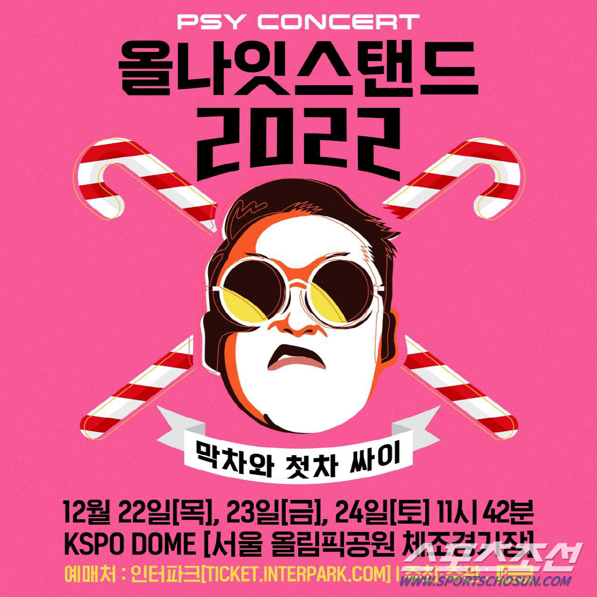한편 싸이는 12월 22일부터 24일까지 사흘간 서울 올림픽공원 KSPO DOME(올림픽체조경기장)에서 '올나잇스탠드 2022'를 개최한다.