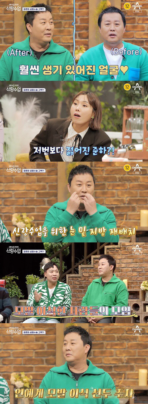 이에 정준하는 "사실 제가 눈 밑 지방 재배치를 했다"며 '뜬금포' 시술 고백을 해, 모두를 놀라게 만들었다. 정준하는 "부기가 조금 덜 빠졌다"고 털어놨다.