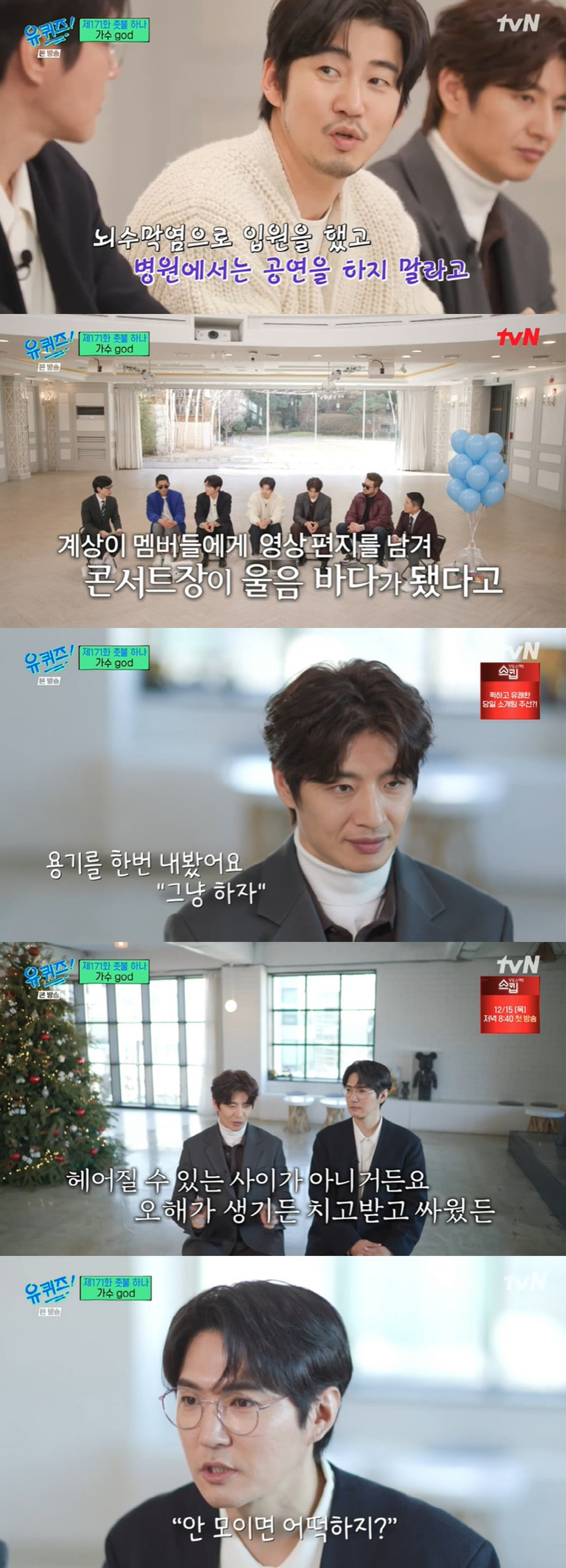 윤계상은 "매번 그리웠던 것 같다. 지금도 그립다. 우리가 헤어지는 과정에서 서로 오해가 있었다. 식구이다 보니 이해해주겠지 하고 침묵했던 게 쌓이며 오해가 커졌다. 내 안의 속좁음 때문에 불편했던 것 같다. 그래도 멤버들은 그런 게 없었다. 김태우가 매년 연락해서 같이 하자고 했고 멤버들도 괜찮다고 손 내밀어줘서 같이 하게 됐다"고 고백했다.